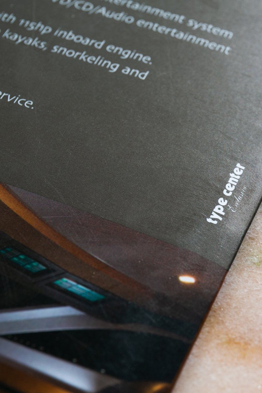 Χαρτί 250 gsm, εκτύπωση τετραχρωμία (CMYK) με μία επιπλέον χρυσή απόχρωση, ματ βερνίκι σε όλη την επιφάνεια