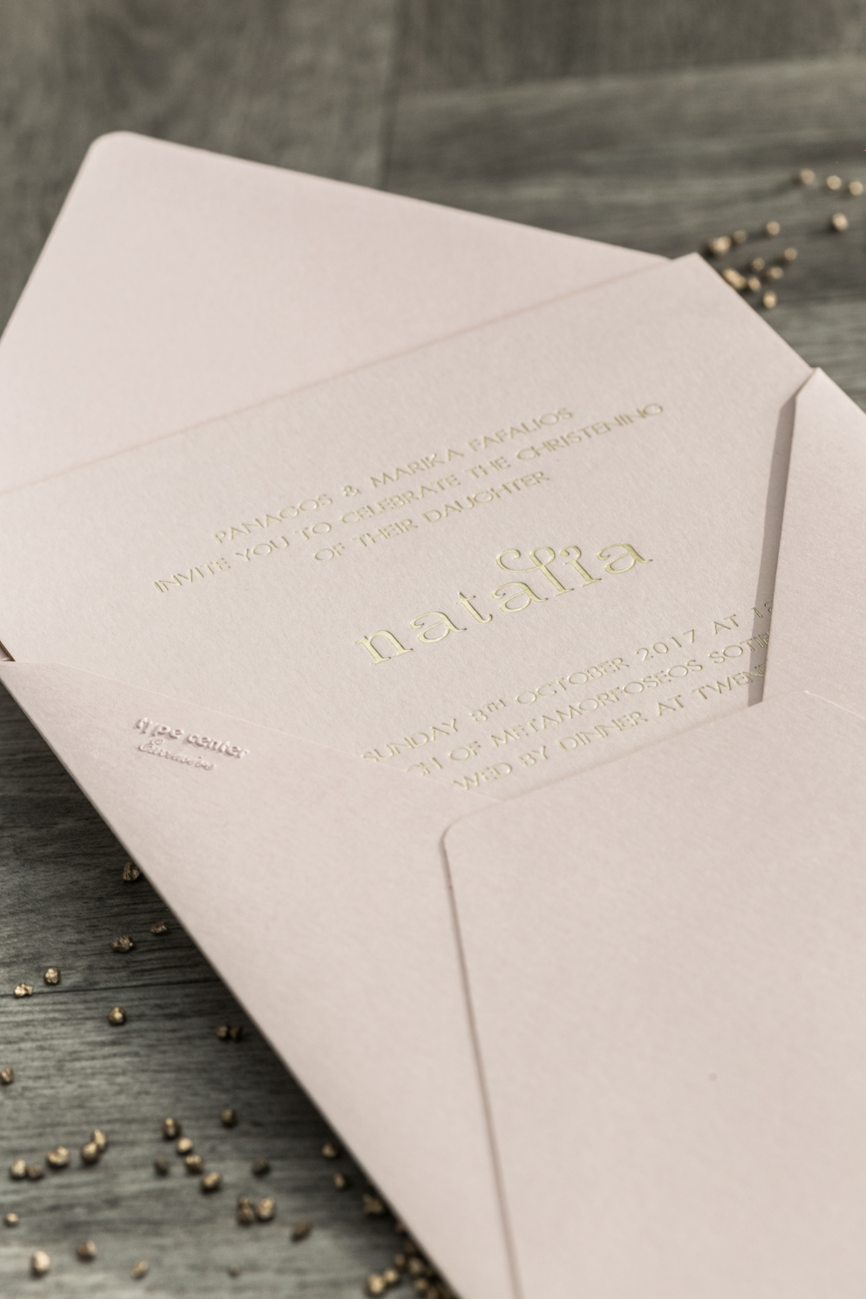 Εκτυπωμένη λεπτομέρεια με χρυσό μελάνι επάνω στους φακέλους