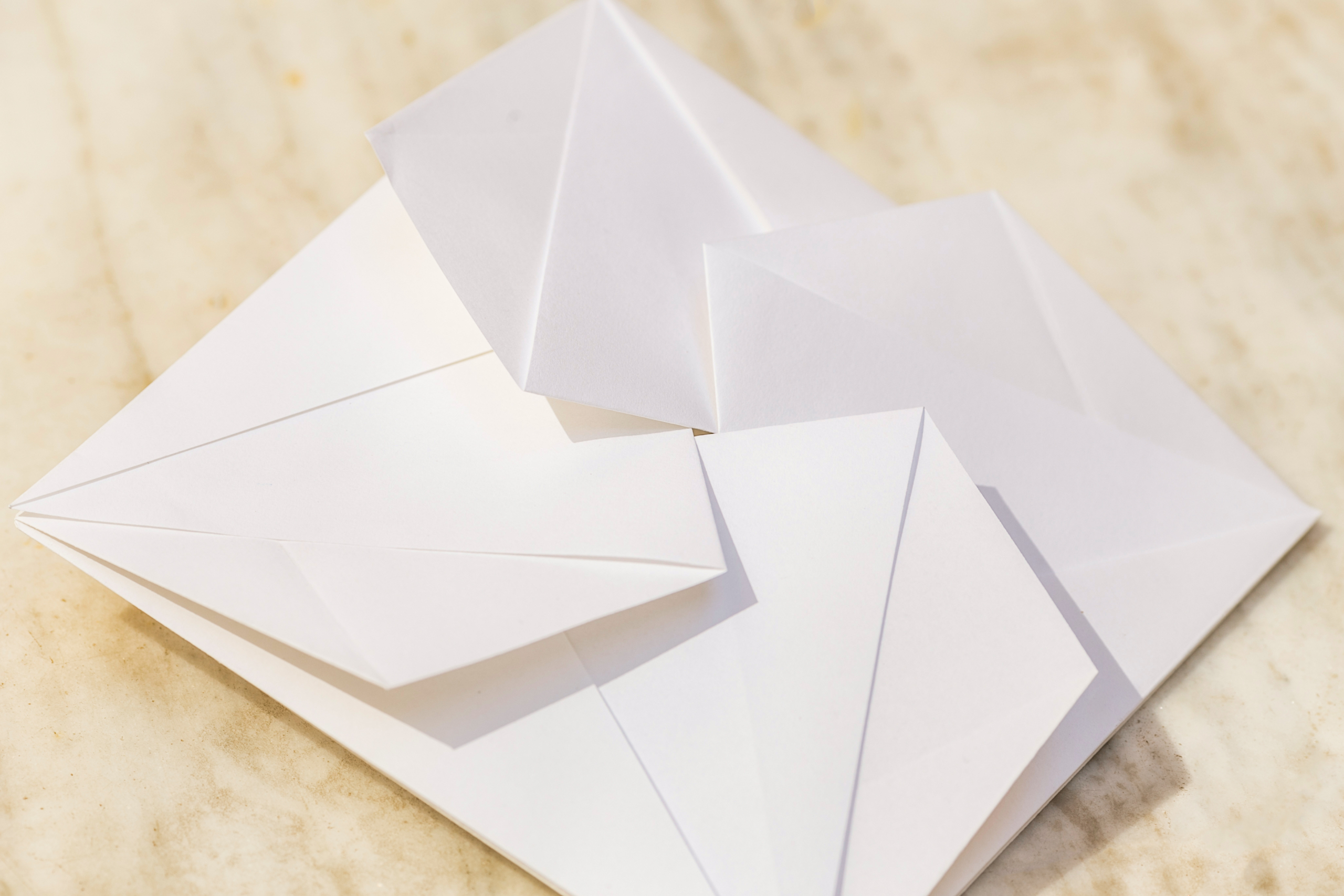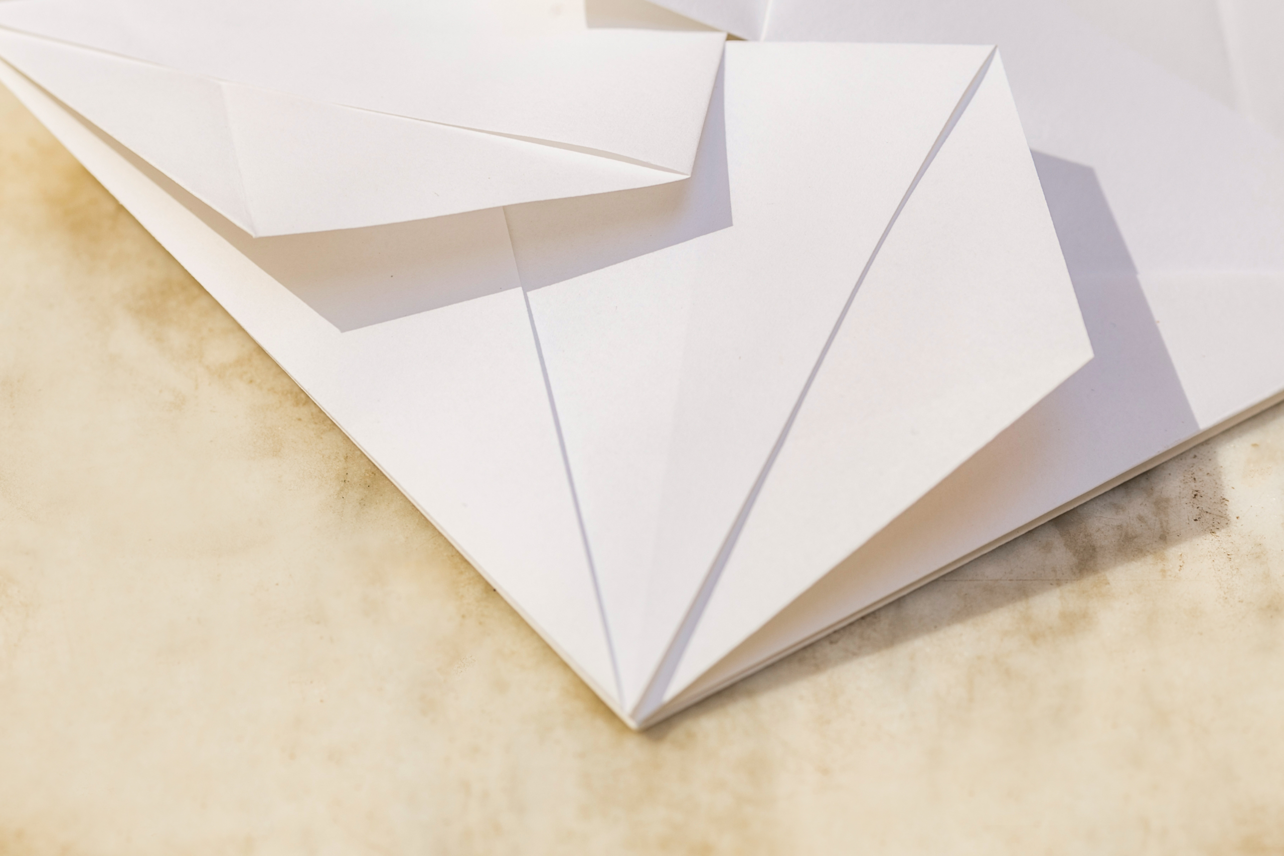 Τετράγωνος φάκελος με δίπλωμα Origami από λευκό, βαμβακερό χαρτί.