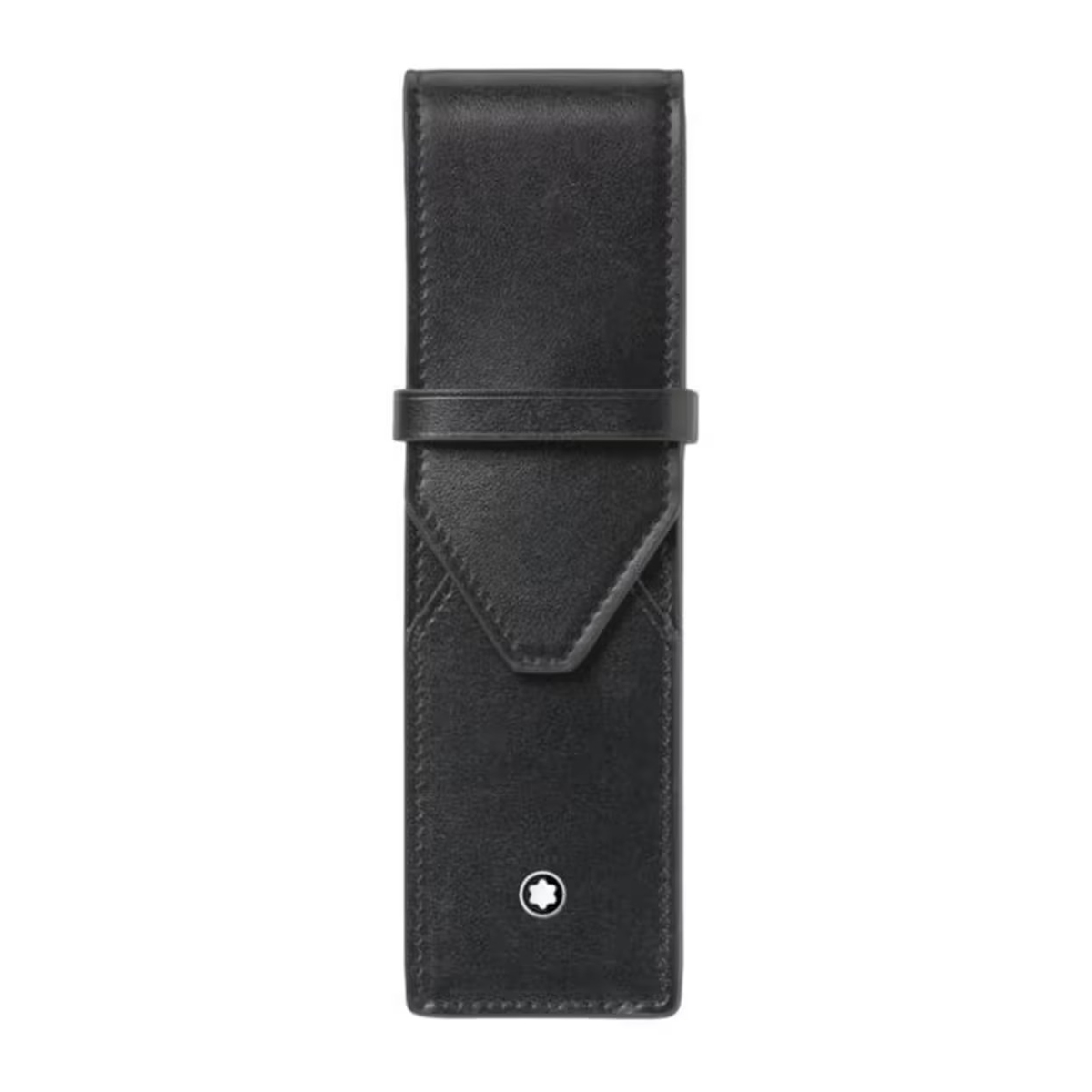 Δερμάτινη θήκη για στυλό του οίκου Montblanc κατασκευασμένη από την καλύτερη ποιότητα δέρματος στον κόσμο σε μαύρο χρώμα. Εξωτερικά υπάρχει το έμβλημα της Montblanc από παλλάδιο.