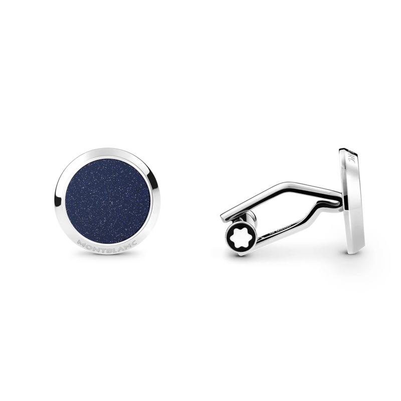 Μανικετόκουμπα του οίκου Montblanc από ανοξείδωτο ατσάλι με μπλε χρυσόλιθο.