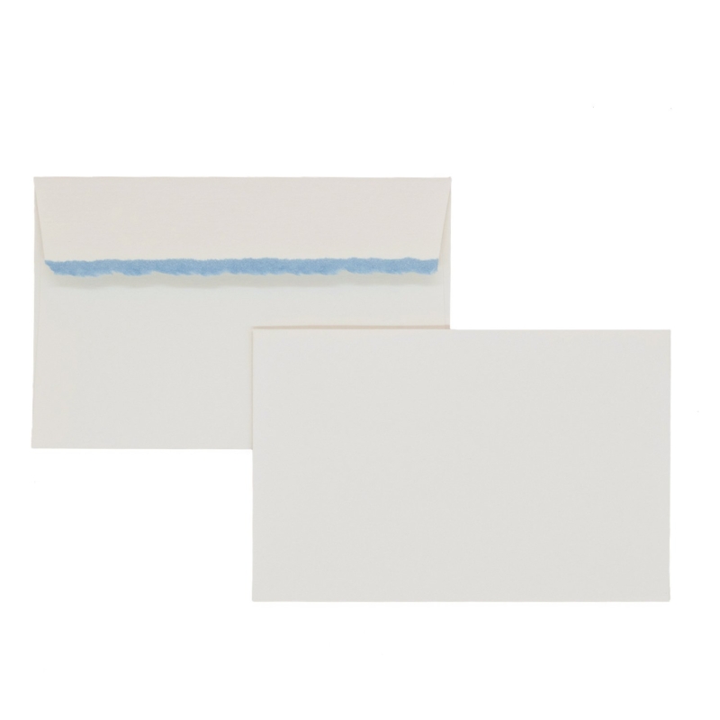 Παραλληλόγραμμος χειροποίητος φάκελος από ιβουάρ ανακυκλωμένο χαρτί με χειροποίητο τελείωμα στο κλείσιμο και ασορτί κάρτα. Το βάρος του χαρτιού στους φακέλους είναι στα 170gr ενώ της κάρτας στα 300gr. Το σετ έχει 10 φακέλους και 10 κάρτες. Δυνατότητα εκτύπωσης ονομάτων.