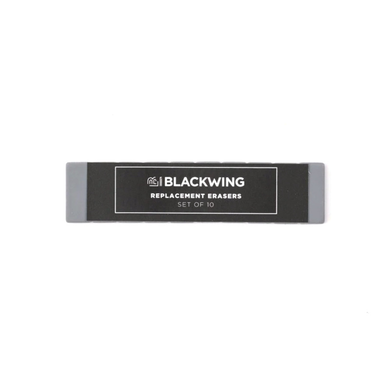 Τα Blackwings ξεχωρίζουν για τις εμβληματικές, αντικαταστάσιμες, τετράγωνες γόμες τους. Για να αντικαταστήσετε τη γόμα σας, σύρετε τη γόμα και βγάλτε το κλιπ από το δακτύλιο, αφαιρέστε το κλιπ από την παλιά γόμα, τοποθετήστε τη νέα γόμα στο κλιπ και τοποθετήστε τη νέα γόμα και κλιπ μέσα στο δακτύλιο.