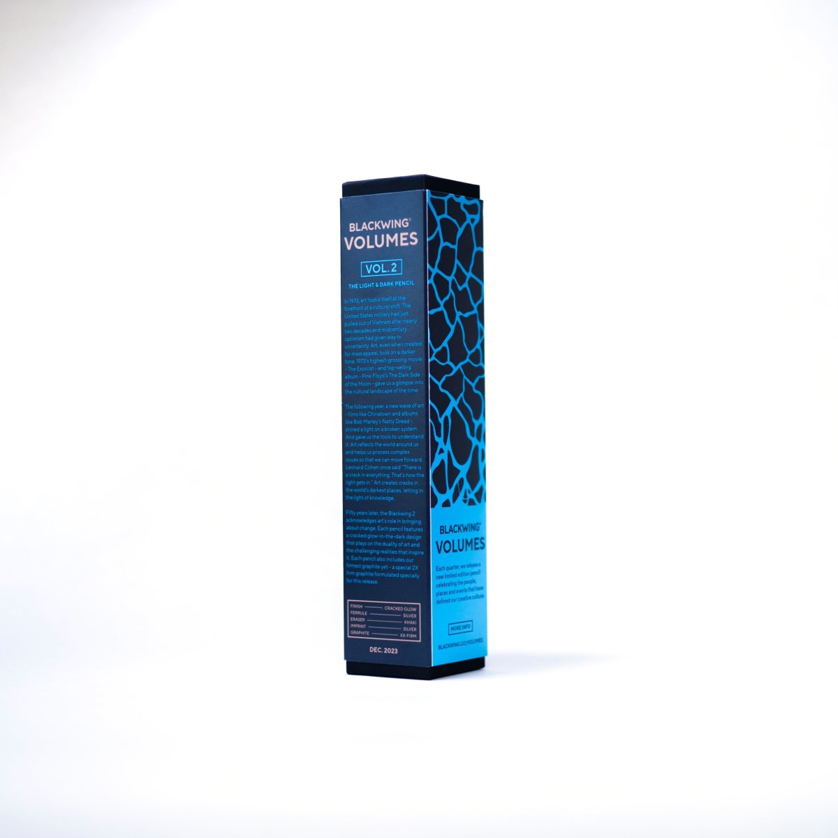 Το Blackwing Volume 2 γιορτάζει τη δύναμη της τέχνης να επιφέρει αλλαγές. Διαθέτοντας μια ραγισμένη σχεδίαση με λάμψη στο σκοτάδι και ένα νέο 2X Firm Graphite, αυτή η έκδοση αντικατοπτρίζει τις πολιτισμικές αλλαγές του 1973, όταν η τέχνη άρχισε να αντιμετωπίζει πιο σκοτεινά θέματα και κοινωνικά ζητήματα. Εμπνευσμένο από την ιδέα ότι «υπάρχει μια ρωγμή σε όλα», αυτό το μολύβι συμβολίζει πώς η τέχνη φωτίζει και μας βοηθά να κατανοήσουμε πολύπλοκες πραγματικότητες.