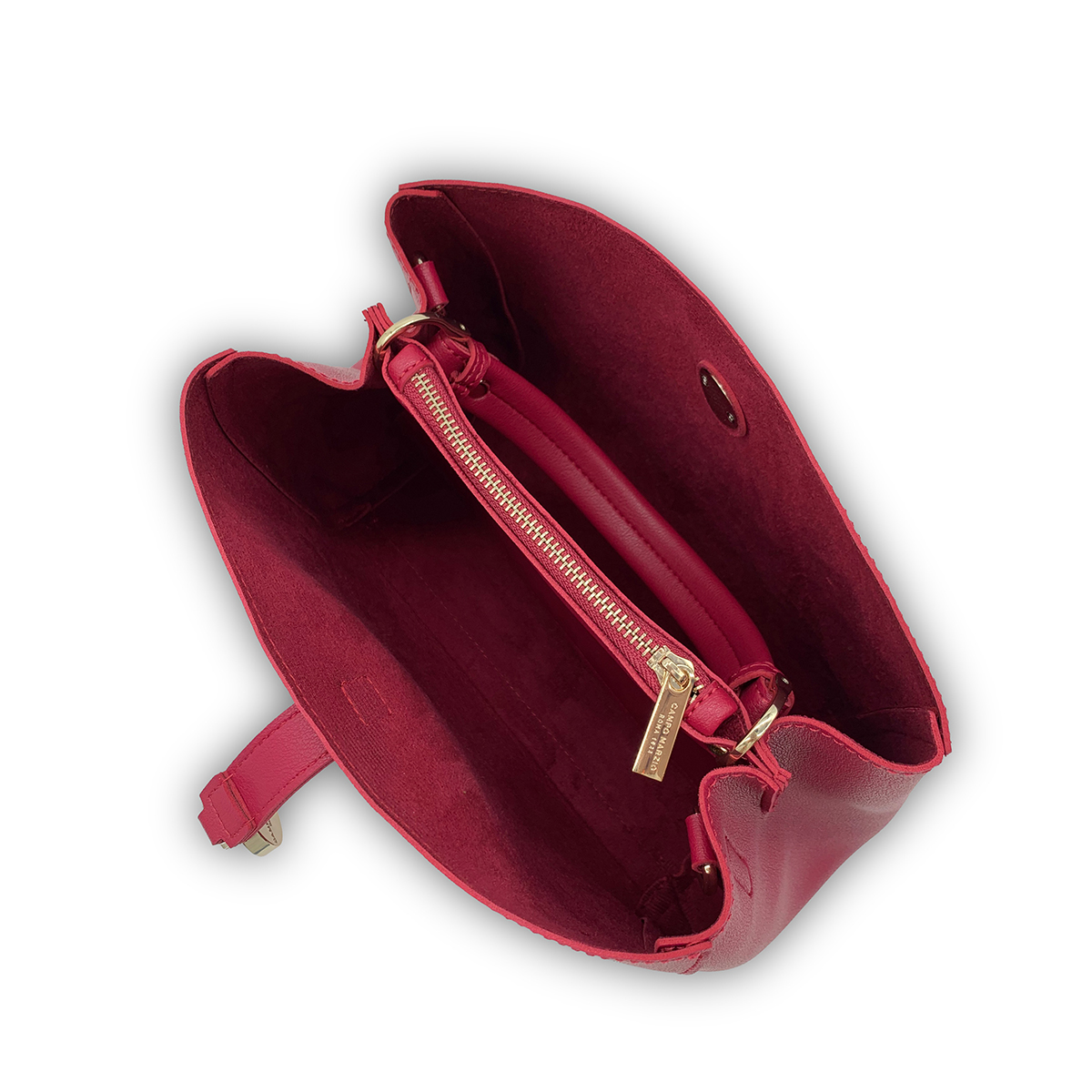 Τσάντα ώμου της Campo Marzio από οικολογικό δέρμα. Η τσάντα είναι σε χρώμα φούξια.
