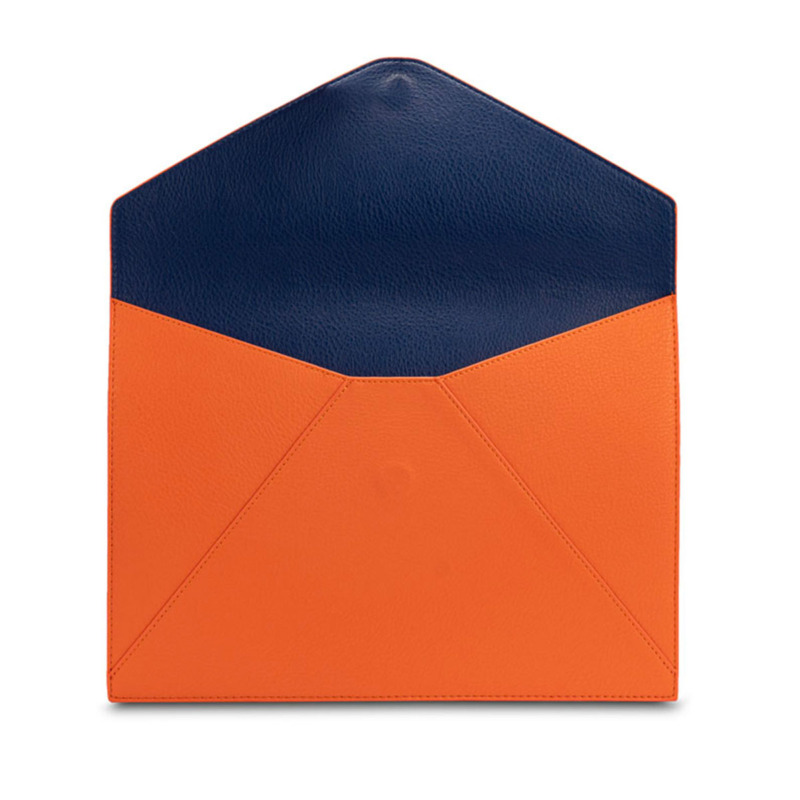 Ντοσιέ συνεδρίων για έγγραφα Α4 σε χρώμα πορτοκαλί εξωτερικά και μπλε εσωτερικά, κατασκευασμένος από οικολογικό δέρμα.