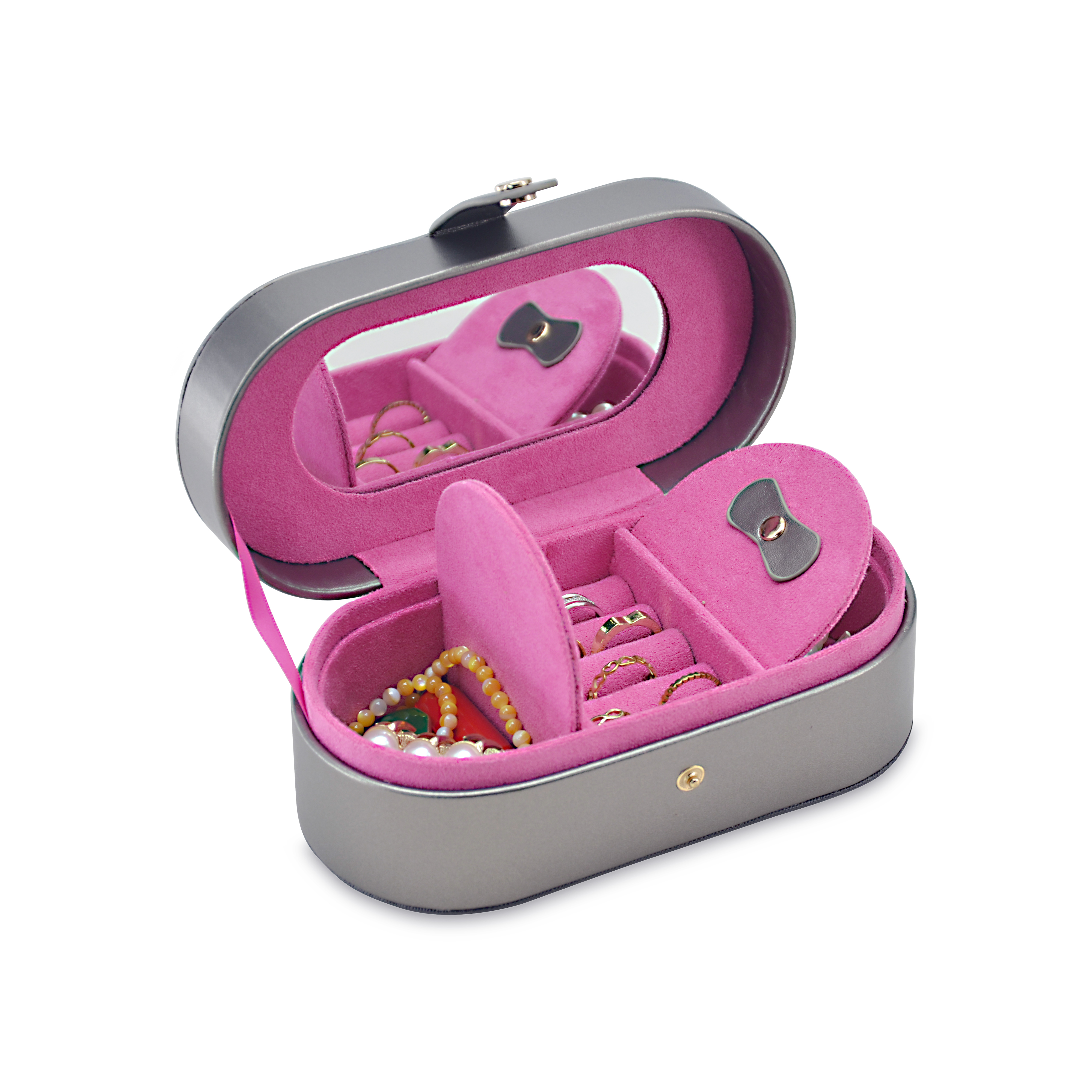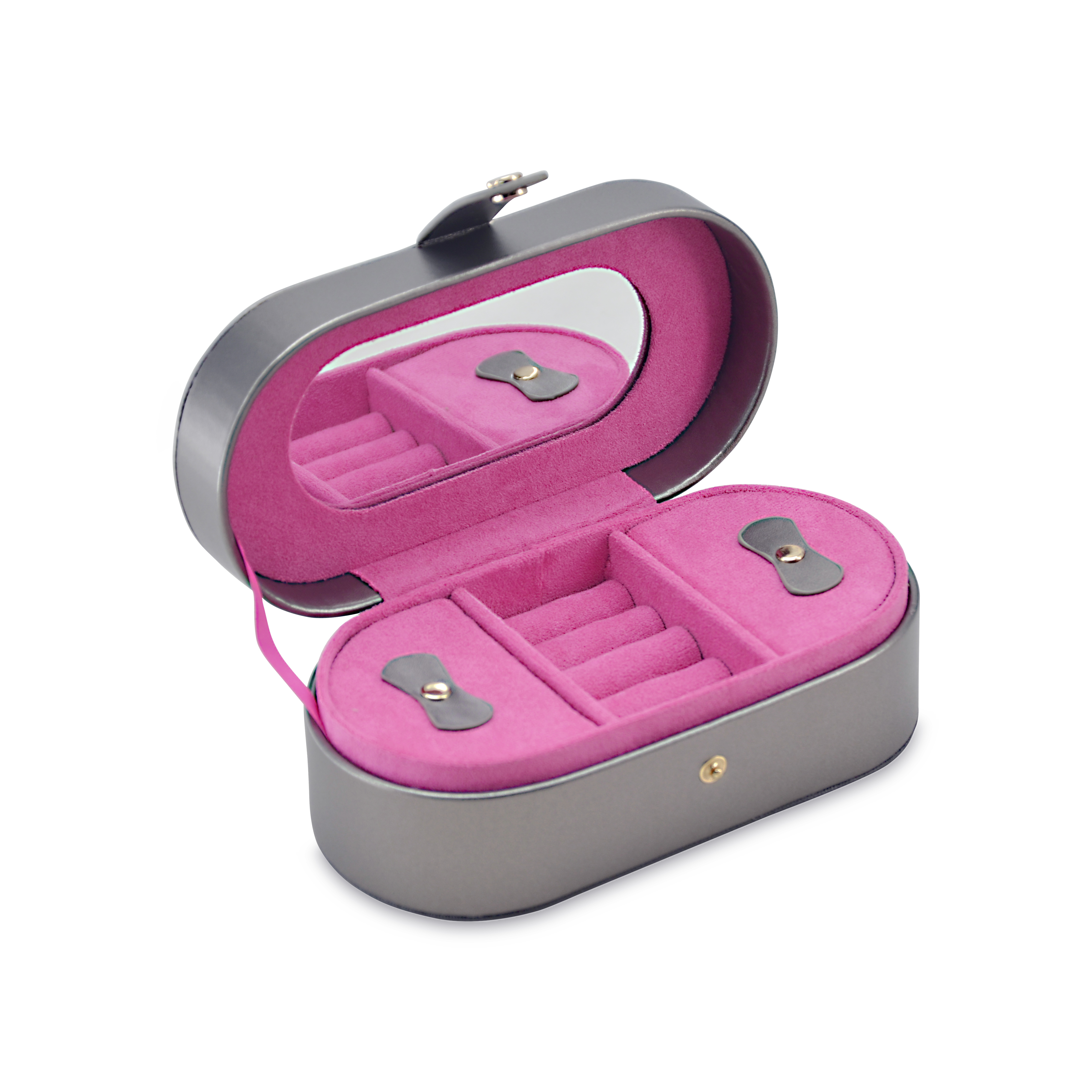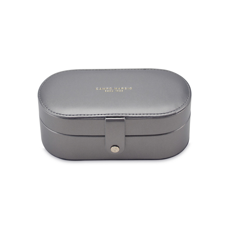 Κοσμηματοθήκη δερμάτινη σε γκρι χρώμα. Εσωτερικά έχει θήκες για κολιέ, βραχιόλια και δαχτυλίδια. Η κοσμηματοθήκη κλείνει με φερμουάρ. Ιδανική για μεταφορά κοσμημάτων σε ταξίδια. Όλα μας τα είδη έρχονται σε συσκευασία δώρου. Με την υπηρεσία της προσωποποίησης μπορείτε να προσθέσετε τα μονογράμματά σας.