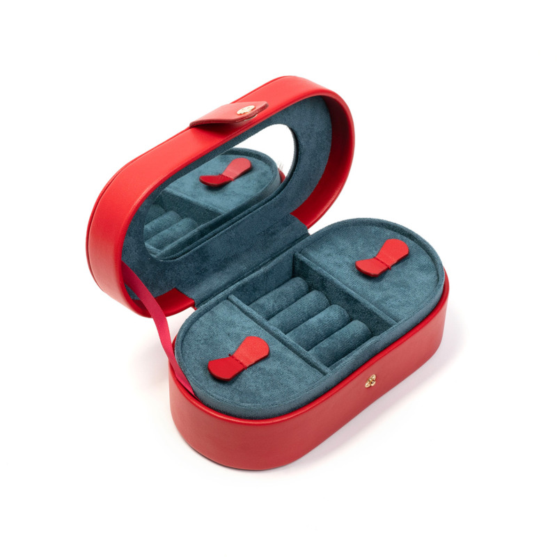 Κοσμηματοθήκη δερμάτινη σε κόκκινο χρώμα. Εσωτερικά έχει θήκες για κολιέ, βραχιόλια και δαχτυλίδια. Η κοσμηματοθήκη κλείνει με φερμουάρ. Ιδανική για μεταφορά κοσμημάτων σε ταξίδια. Όλα μας τα είδη έρχονται σε συσκευασία δώρου. Με την υπηρεσία της προσωποποίησης μπορείτε να προσθέσετε τα μονογράμματά σας.