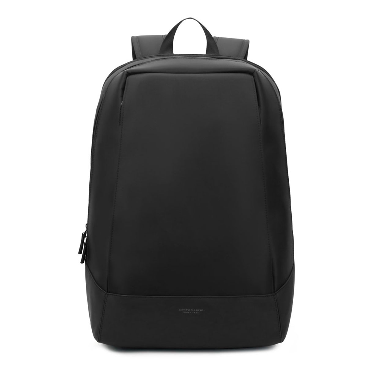 Τσάντα πλάτης της Campo Marzio από νάυλον σε μαύρο χρώμα. Εξωτερικό: Διαθέτει δύο πλαϊνές τσέπες για εύκολη πρόσβαση σε βασικά αντικείμενα. Εσωτερικό: Οργανωμένος χώρος με 3 χωρίσματα, συμπεριλαμβανομένου ενός με 2 επίπεδες τσέπες, 2 θήκες για στυλό, θήκη με φερμουάρ, επίπεδη τσέπη και γάντζο για κλειδιά. Το δεύτερο χώρισμα περιλαμβάνει επίπεδη τσέπη, ενώ το τρίτο είναι σχεδιασμένο για φορητό υπολογιστή έως 17” (έως 30Μ x 45Υ cm). Άνεση στη μεταφορά: Φοριέται στους ώμους με ρυθμιζόμενους ιμάντες που διαθέτουν λεπτομέρειες mesh για μέγιστη άνεση. Η πλάτη είναι επενδυμένη με mesh υλικό για μέγιστη διαπνοή. Διαθέτει επίσης σύστημα στερέωσης σε βαλίτσα χειραποσκευής για μεγαλύτερη ευκολία στα ταξίδια. Διαστάσεις: 32Μ x 47Υ x 14Β cm