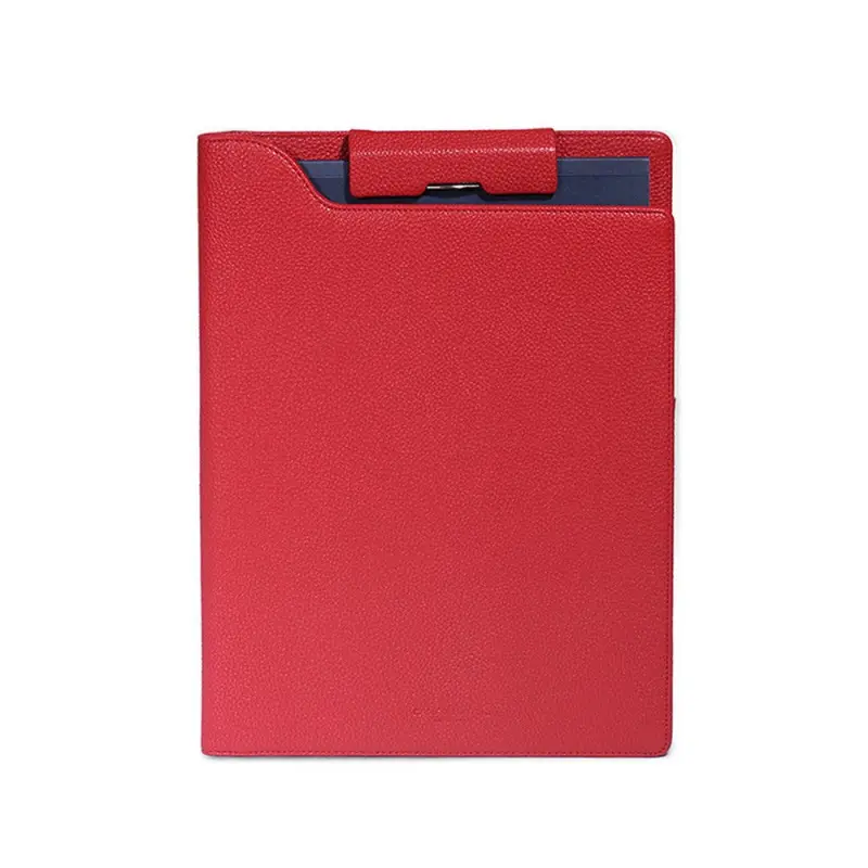 Ντοσιέ συνεδρίων για έγγραφα Α4 με μπλοκ σημειώσεων σε χρώμα κόκκινο. Το folder είναι κατασκευασμένο από οικολογικό δέρμα. Εσωτερικά υπάρχει κλιπ για μπλοκ σημειώσεων με γραμμές και μια θήκη για αποθήκευση εγγράφων. Ιδανικό για τις επαγγελματικές σας συναντήσεις. Όλα τα προϊόντα μας αποστέλλονται σε συσκευασία δώρου. Με την υπηρεσία της προσωποποίησης μπορείτε να χαράξετε το μονόγραμμά σας.