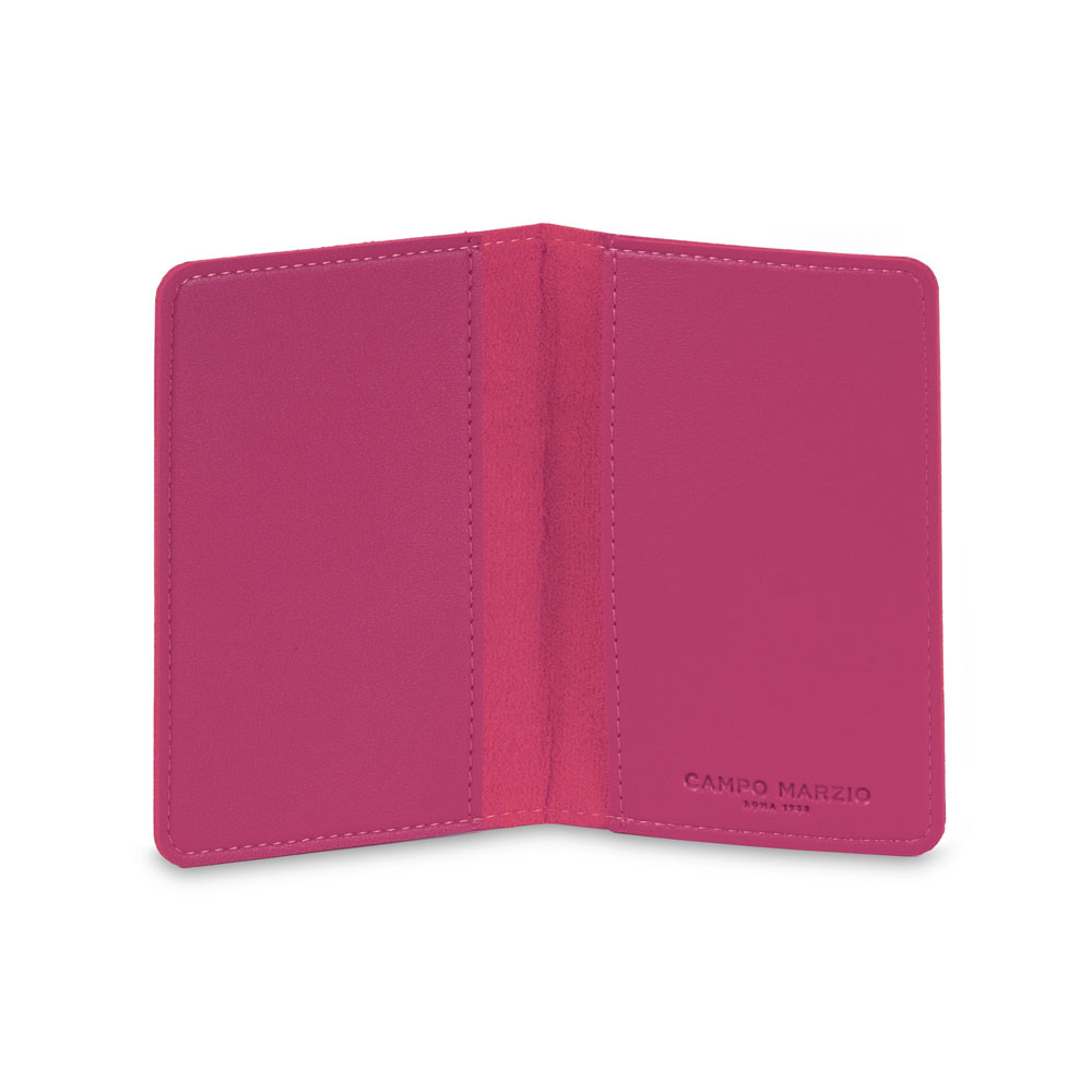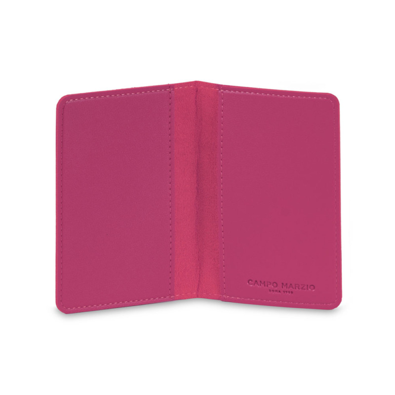 Θήκη Διαβατηρίου από τον οίκο Campo Marzio σε φούξια χρώμα. Κατασκευασμένη από υψηλής ποιότητας οικολογικό δέρμα, αυτή η κομψή θήκη είναι ιδανική για να προσθέσετε μια πινελιά κομψότητας στα ταξίδια σας, ενώ παράλληλα προστατεύετε τα έγγραφά σας. Διαθέτει στο εσωτερικό δύο πλαϊνές τσέπες για το διαβατήριό σας και την κάρτα επιβίβασης.