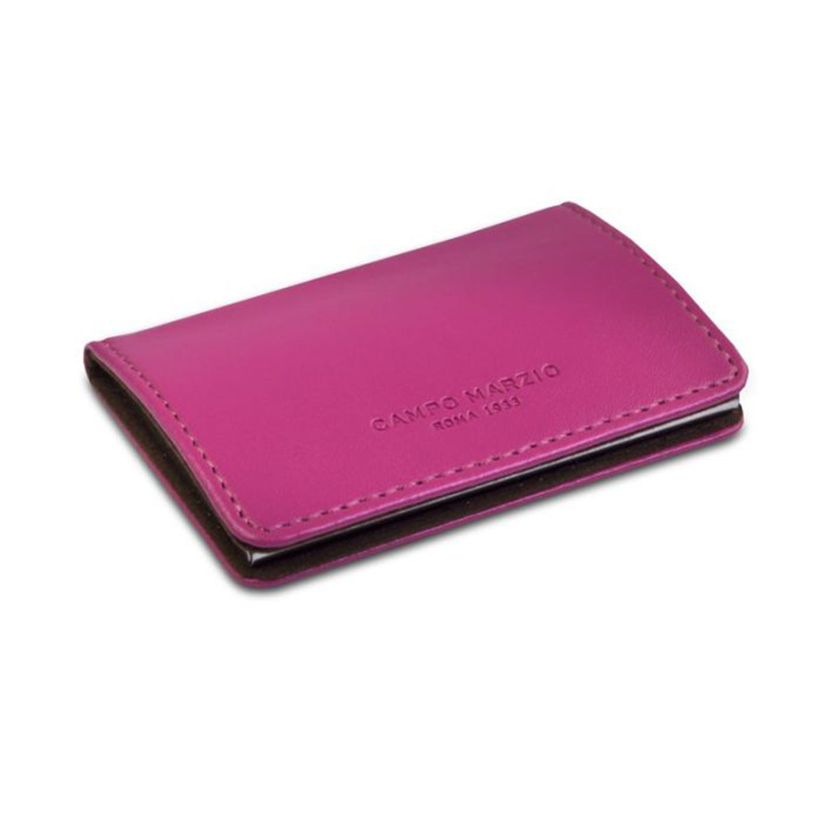 Θήκη επαγγελματικών καρτών της Campo Marzio με μαγνητικό κούμπωμα σε φούξια χρώμα. Εσωτερικά έχει μία μεγάλη θήκη που χωράει περίπου 20 κάρτες.
