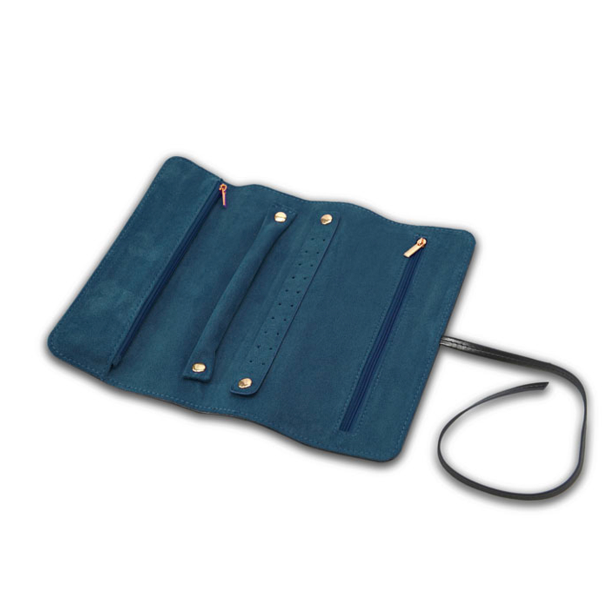 Κοσμηματοθήκη σε γκρι χρώμα. Εσωτερικά έχει 2 θήκες για κολιέ, βραχιόλια και 20 θήκες για σκουλαρίκια και δαχτυλίδια. Η κοσμηματοθήκη κλείνει με λάστιχο. Ιδανική για μεταφορά κοσμημάτων σε ταξίδια. Όλα μας τα είδη έρχονται σε συσκευασία δώρου. Με την υπηρεσία της προσωποποίησης μπορείτε να προσθέσετε τα μονογράμματά σας.