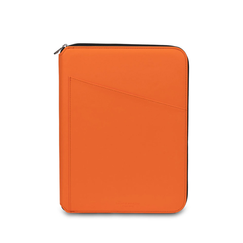 Campo Marzio ντοσιέ συνεδρίων A4 από την Campo Marzio σε πορτοκαλί χρώμα, κατασκευασμένο από οικολογικό δέρμα. Εξωτερικό: Μπροστινή τσέπη. Εσωτερικό: Οργανωμένος χώρος με αριθμομηχανή, 6 υποδοχές για κάρτες, 1 ελαστική θήκη για στυλό, 1 πλαϊνή τσέπη για σημειωματάριο, 1 επίπεδη τσέπη, 1 θήκη για μπλοκ σημειώσεων και περιλαμβάνει σημειωματάριο Α4. Διαστάσεις: 24Μ x 33Υ x 4Β cm Με την αποκλειστική μας υπηρεσία προσωποποίησης, μπορούμε να εκτυπώσουμε, χαράξουμε ή τυπώσουμε με θερμοτυπία τα αρχικά σας ή το λογότυπό σας.