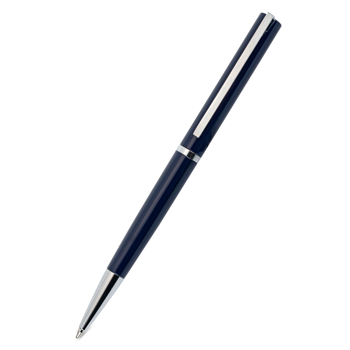 Λεπτό στυλό διαρκείας χρώματος μπλε με μεταλλικά στοιχεία. To στυλό ειναι κατασκευασμένο από λακαρισμένο ορείχαλκο ρητίνη.