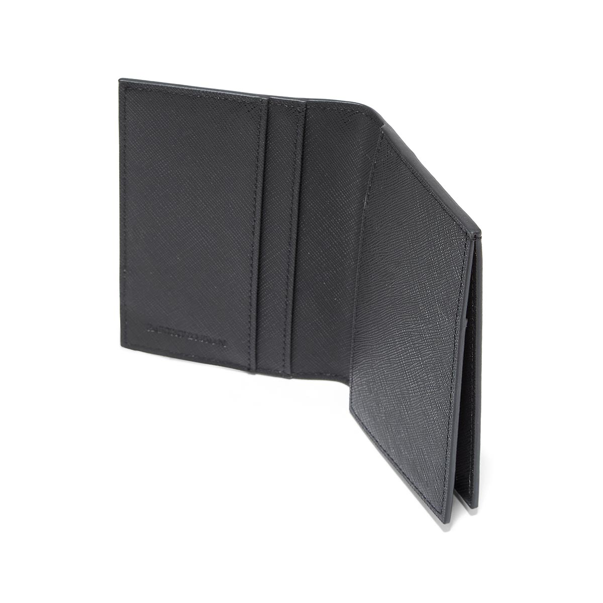Καρτοθήκη του οίκου Emporio Armani, κατασκευασμένη από οικολογικό δέρμα Saffiano, το οποίο συνδυάζει την ανθεκτικότητα και την κομψή υφή του Saffiano με τις βιώσιμες πρακτικές του οίκου. Διαθέτει 4 θήκες για πιστωτικές κάρτες.
