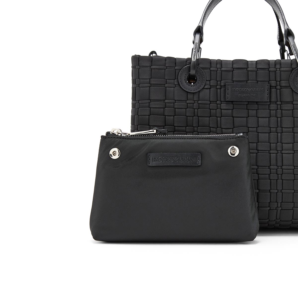 Γυναικεία τσάντα χειρός που μπορεί να φορεθεί και ως crossbody του οίκου Emporio Armani σε μαύρο χρώμα. Διαθέτει καπιτονέ σχέδιο και μεταλλικές λεπτομέρειες σε ασημί χρώμα. Διαθέτει έναν ευρύχωρο κύριο χώρο, καθώς και ένα επιπλέον εσωτερικό αφαιρούμενο νεσεσέρ για καλύτερη οργάνωση. Περιλαμβάνει δύο αφαιρούμενες χειρολαβές και έναν αποσπώμενο ιμάντα ώμου (μήκους περίπου 100 - 105 εκ.), επιτρέποντάς σας να την κρατήσετε στο χέρι ή να τη φορέσετε στον ώμο.