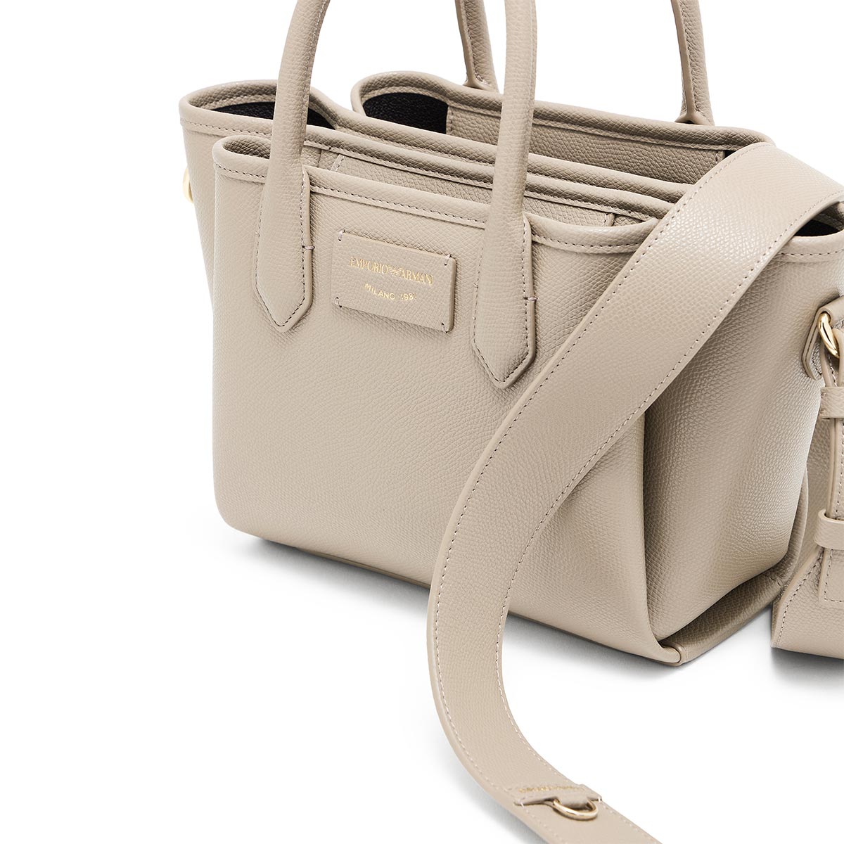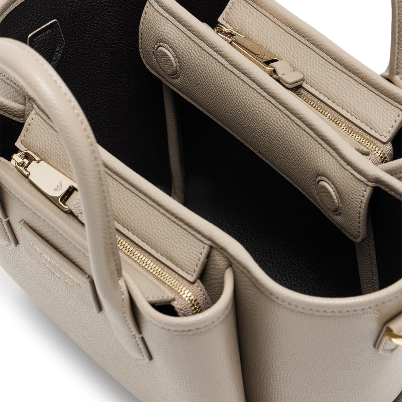 Γυναικεία τσάντα ώμου του οίκου Emporio Armani σε μπεζ χρώμα από οικολογικό δέρμα και φινίρισμα palmellato. Διαθέτει διπλή χειρολαβή και έναν πρακτικό, αποσπώμενο ιμάντα ώμου για μεγαλύτερη άνεση. Αποτελείται από έναν κύριο χώρο και δύο πλαϊνά τμήματα, εξασφαλίζοντας καλή οργάνωση των αντικειμένων σας.