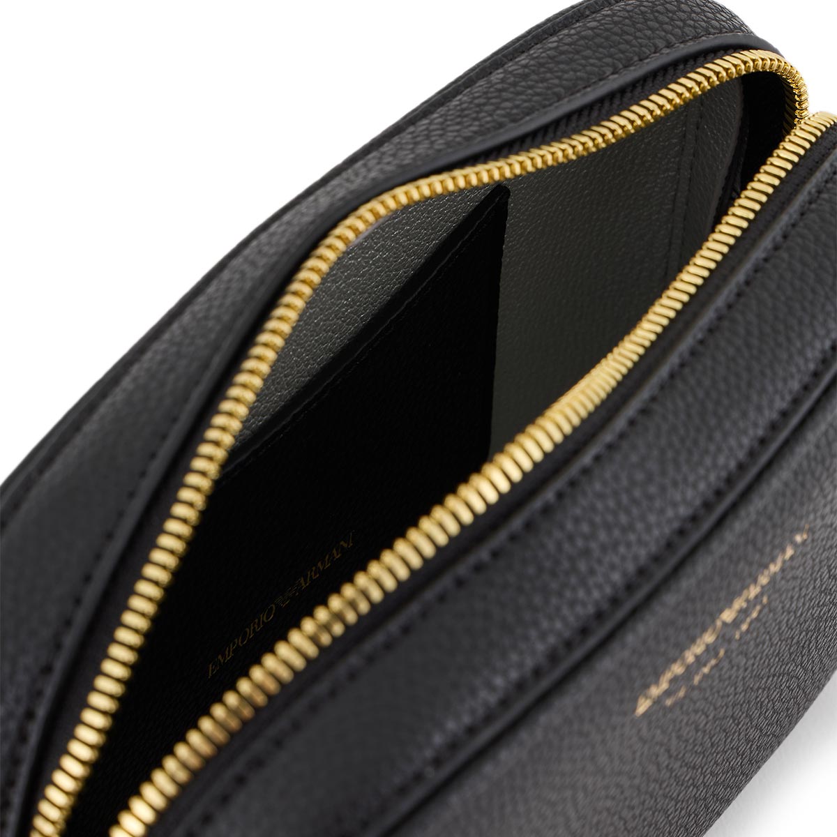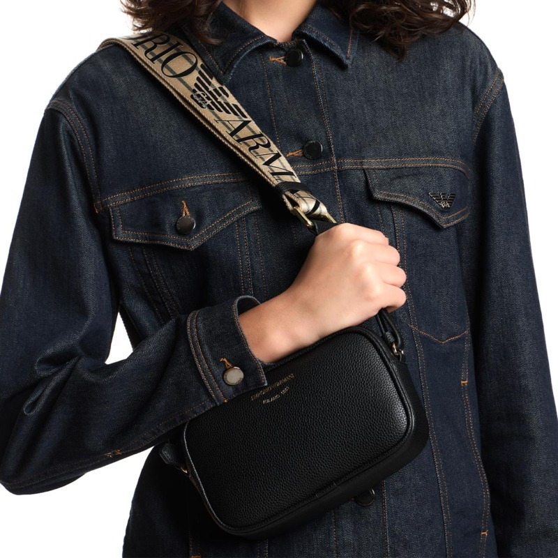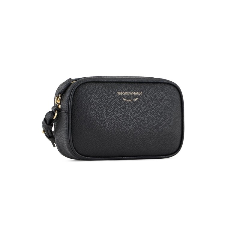 Γυναικεία τσάντα crossbody του οίκου Emporio Armani σε μαύρο χρώμα. Είναι κατασκευασμένη από οικολογικό δέρμα, κλείνει με φερμουάρ και διαθέτει αποσπώμενο λουράκι ώμου. Αποτελείται από έναν ενιαίο χώρο.