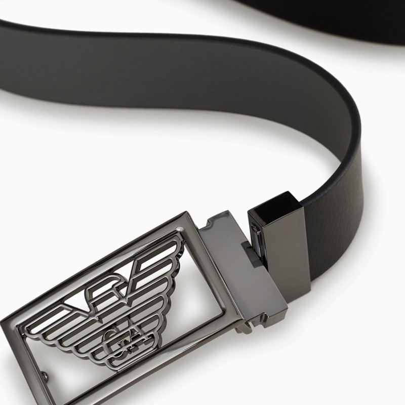 456904|EMPORIO ARMANI ΔΕΡΜΑΤΙΝΗ ΖΩΝΗ ΜΑΥΡΗ-ΓΚΡΙ