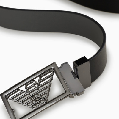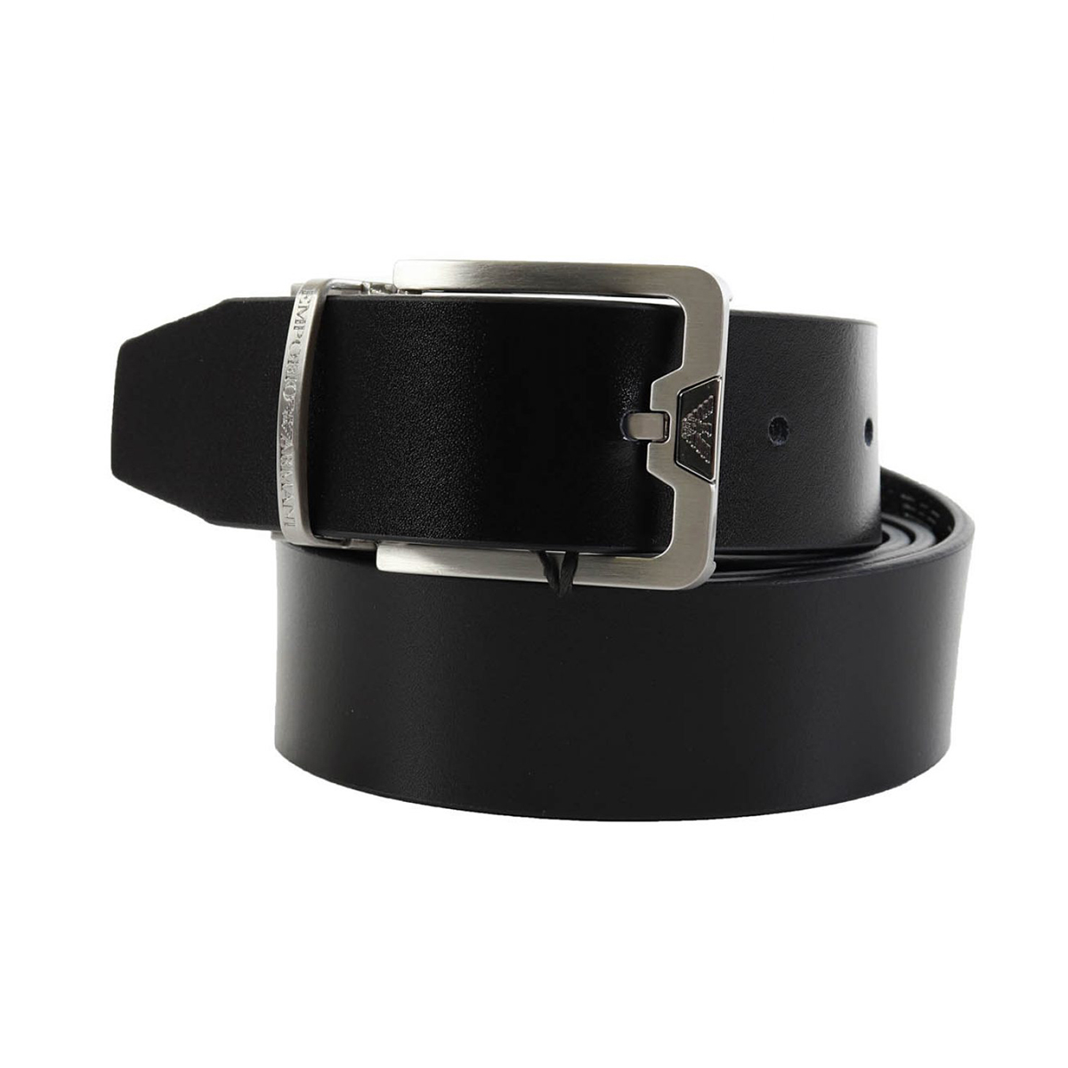 Δερμάτινη ζώνη από τον οίκο Armani. Η ζώνη είναι σε μπλε χρώμα από την μία πλευρά και σε μαύρο χρώμα από την άλλη, μπορεί να φορεθεί και από τις δυο όψεις.