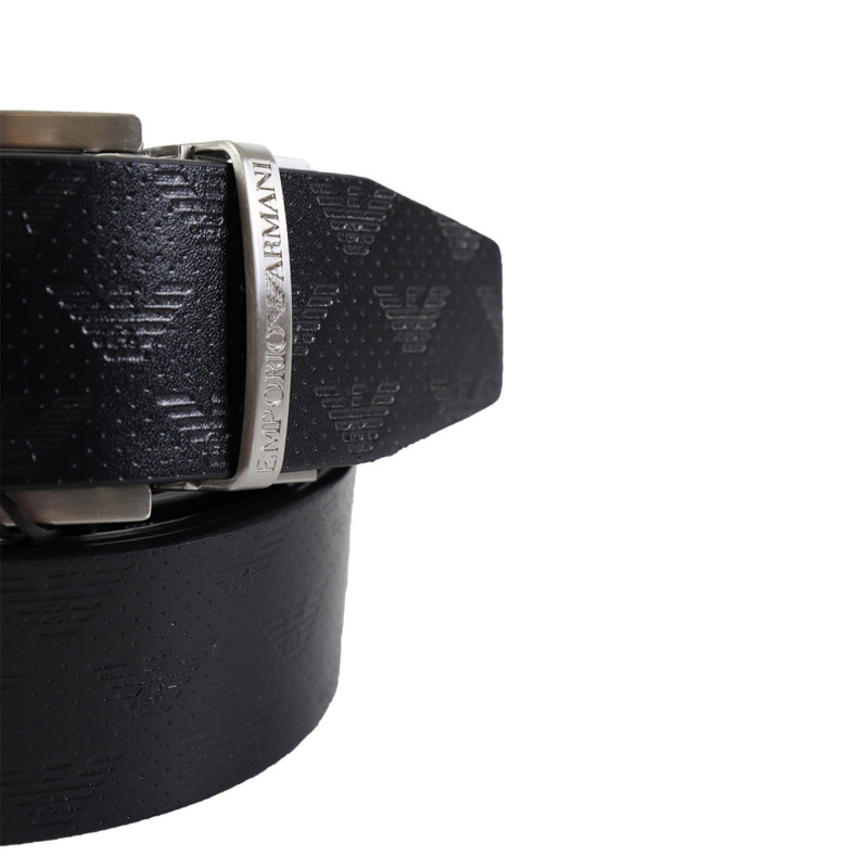 EMPORIO ARMANI ΔΕΡΜΑΤΙΝΗ ΖΩΝΗ ΜΠΛΕ-ΜΑΥΡΗ