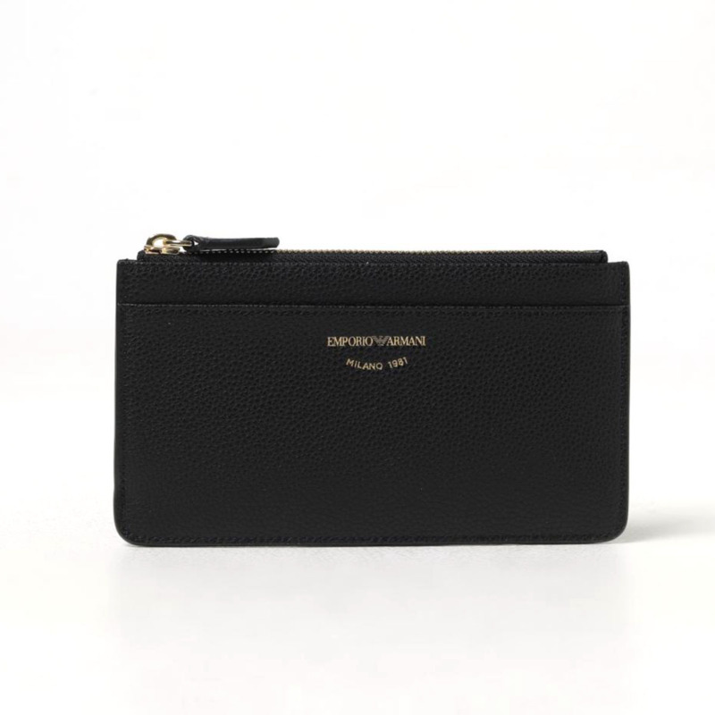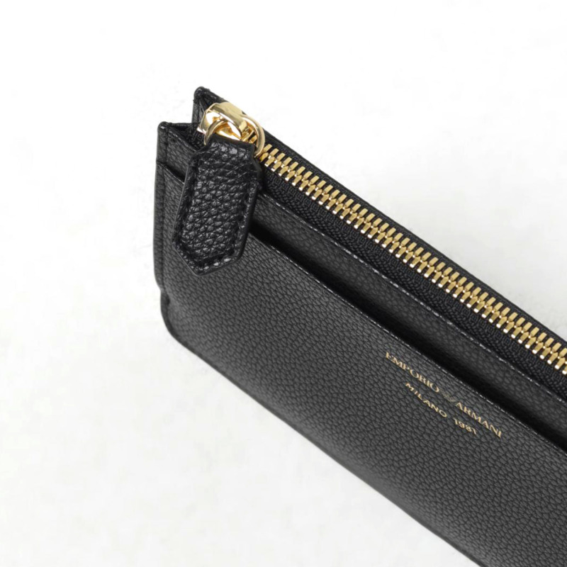 Δερμάτινη θήκη πιστωτικών καρτών από τον οίκο Armani σε χρώμα μαύρο. Διαθέτει 6 θήκες πιστωτικών καρτών, 2 εναλλακτικές θήκες και 1 θήκη η οποία κλείνει με φερμουάρ.