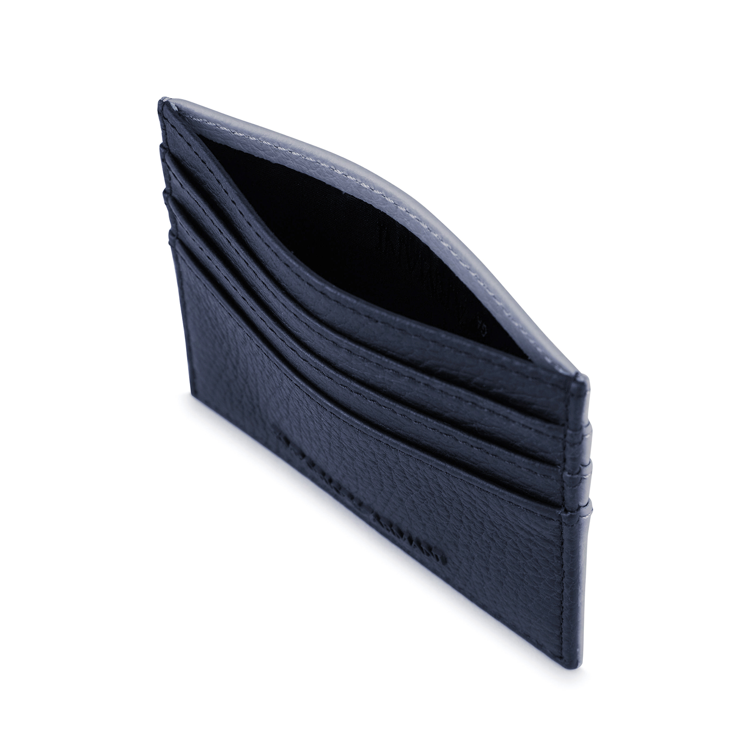 Δερμάτινη καρτοθήκη πιστωτικών καρτών από τον οίκο Armani σε χρώμα μπλε. Έχει 6 θήκες για πιστωτικές κάρτες και μια θέση για χαρτονομίσματα.