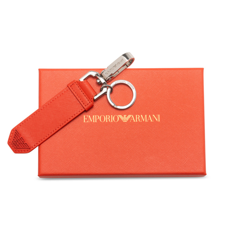 Μπρελόκ από την Emporio Armani σε χρώμα πορτοκαλί Διαθέτει ένα κρίκο και ένα γάτζο κατασκευασμένο από ορείχαλκο
