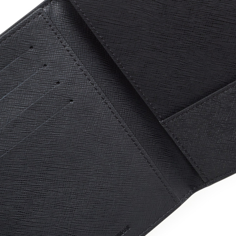Θήκη διαβατηρίου της εταιρείας Emporio Armani σε μαύρο χρώμα. Διαθέτει 4 θέσεις για κάρτες και μια πρόσθετη θήκη. Ιδανικό για άντρες και για γυναίκες.