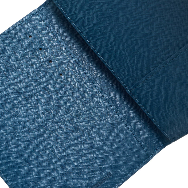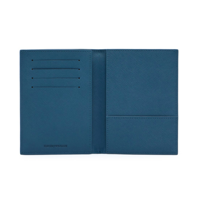 Θήκη διαβατηρίου της εταιρείας Emporio Armani σε μπλε χρώμα. Διαθέτει 4 θέσεις για κάρτες και μια πρόσθετη θήκη. Ιδανικό για άντρες και για γυναίκες.