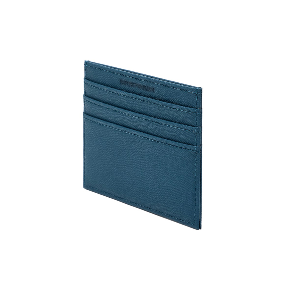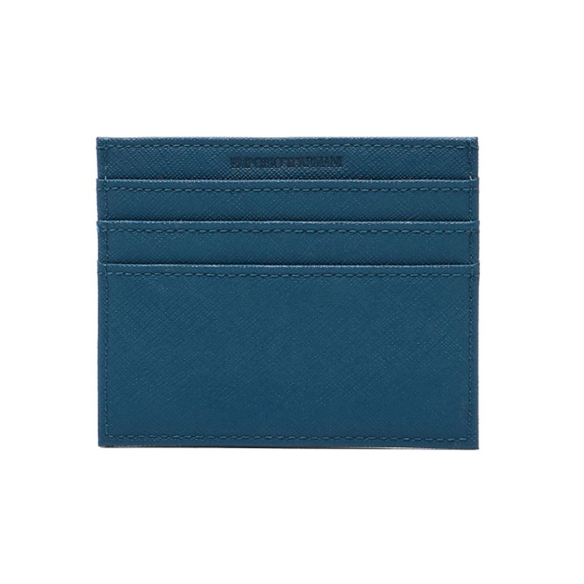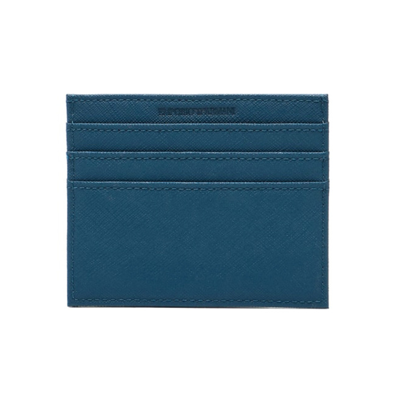 Καρτοθήκη της εταιρείας Emporio Armani σε μπλε χρώμα. Διαθέτει 6 θήκες για πιστωτικές κάρτες και μια εναλλακτική θήκη.