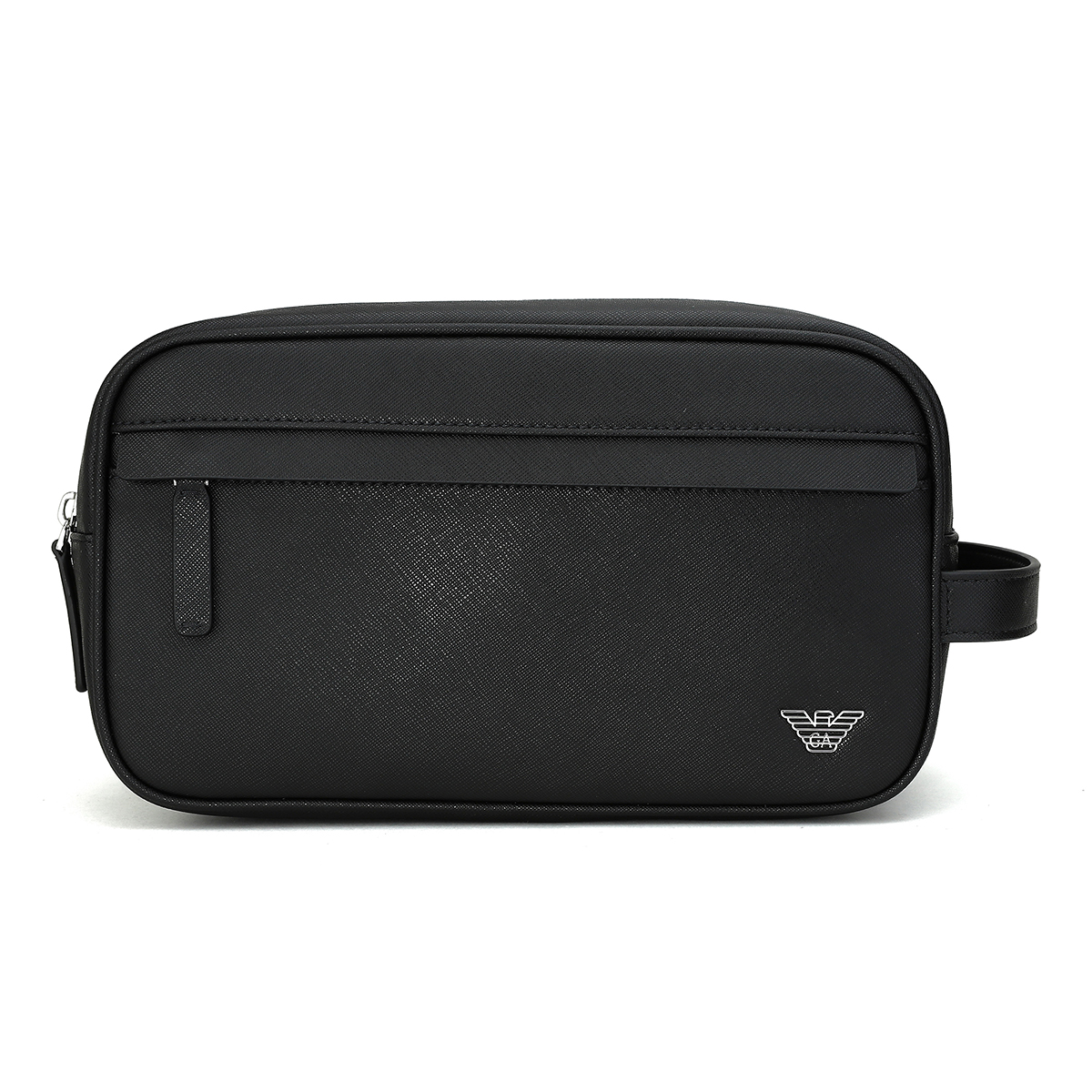 Νεσεσέρ Emporio Armani από saffiano σε μαύρο χρώμα. Διαθέτει έναν μεγάλο, ενιαίο χώρο.