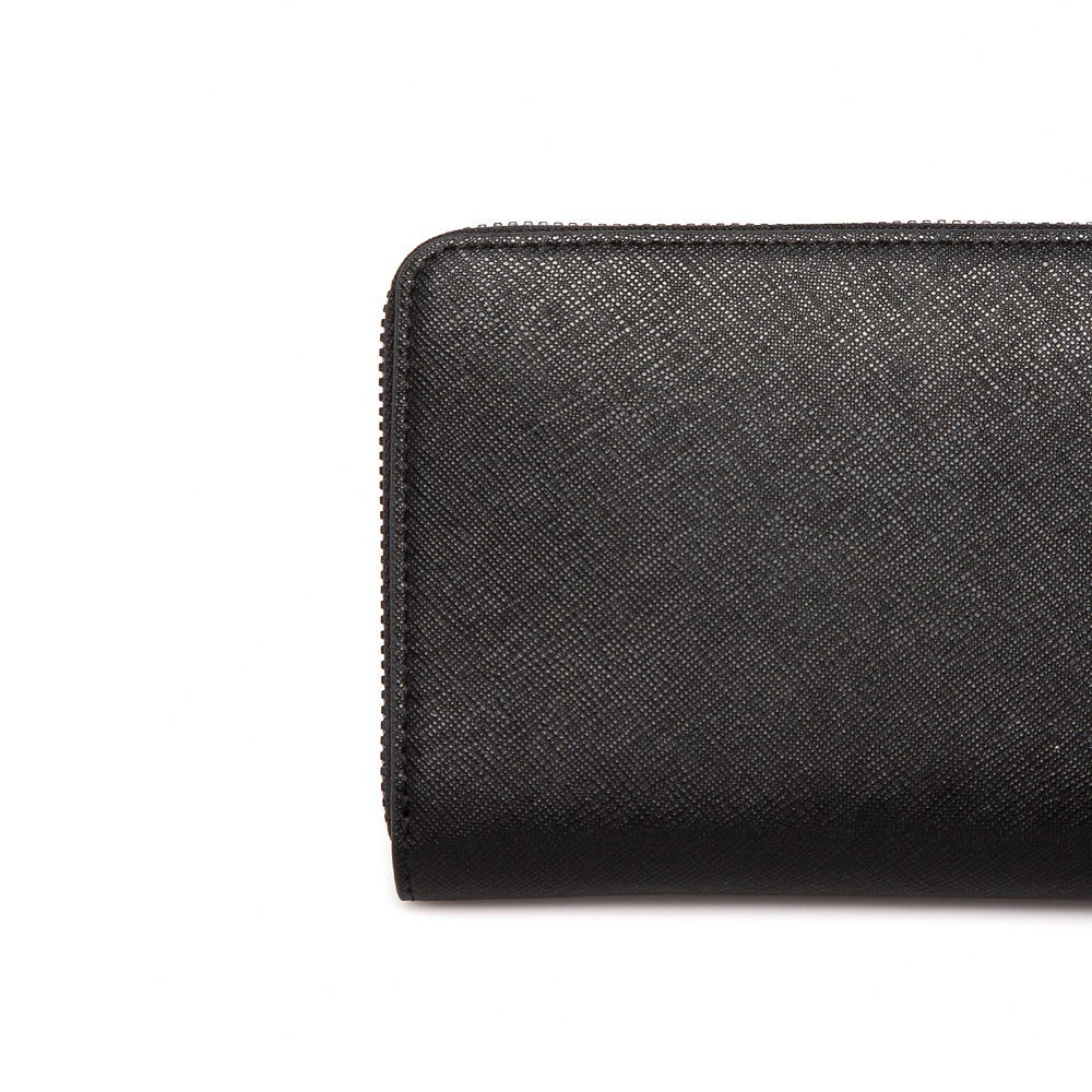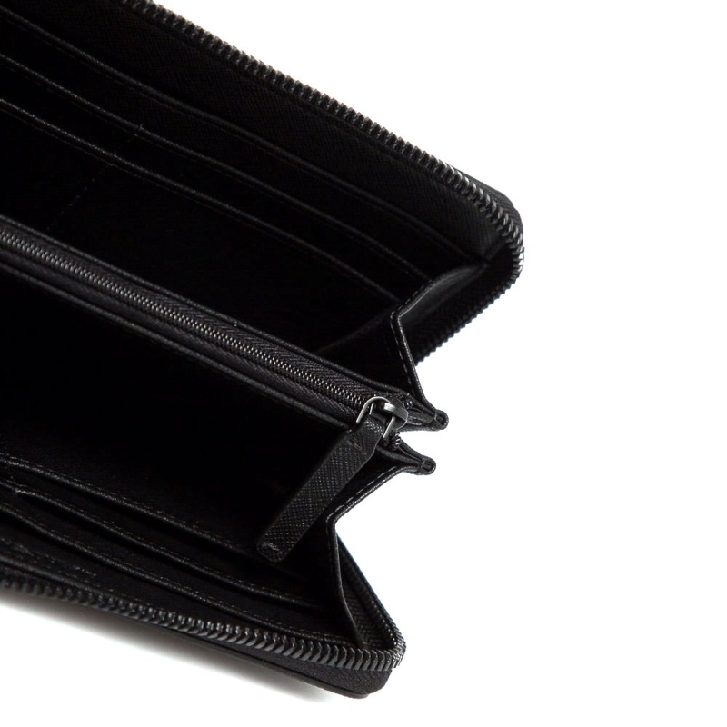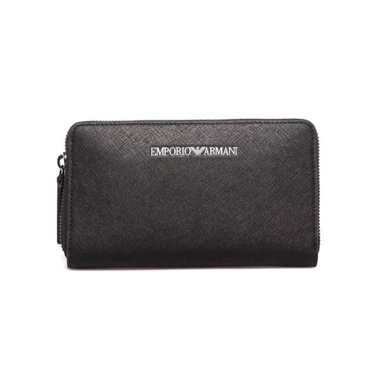 Πορτοφόλι του οίκου Εmporio Armani σε μαύρο χρώμα.Διαθέτει 12 θήκες επαγγελματικών/πιστωτικών καρτών, 2 εναλλακτικές θήκες, 2 θήκη για χαρτονομίσματα και 1 θήκη για κέρματα η οποία κλείνει με φερμουάρ.