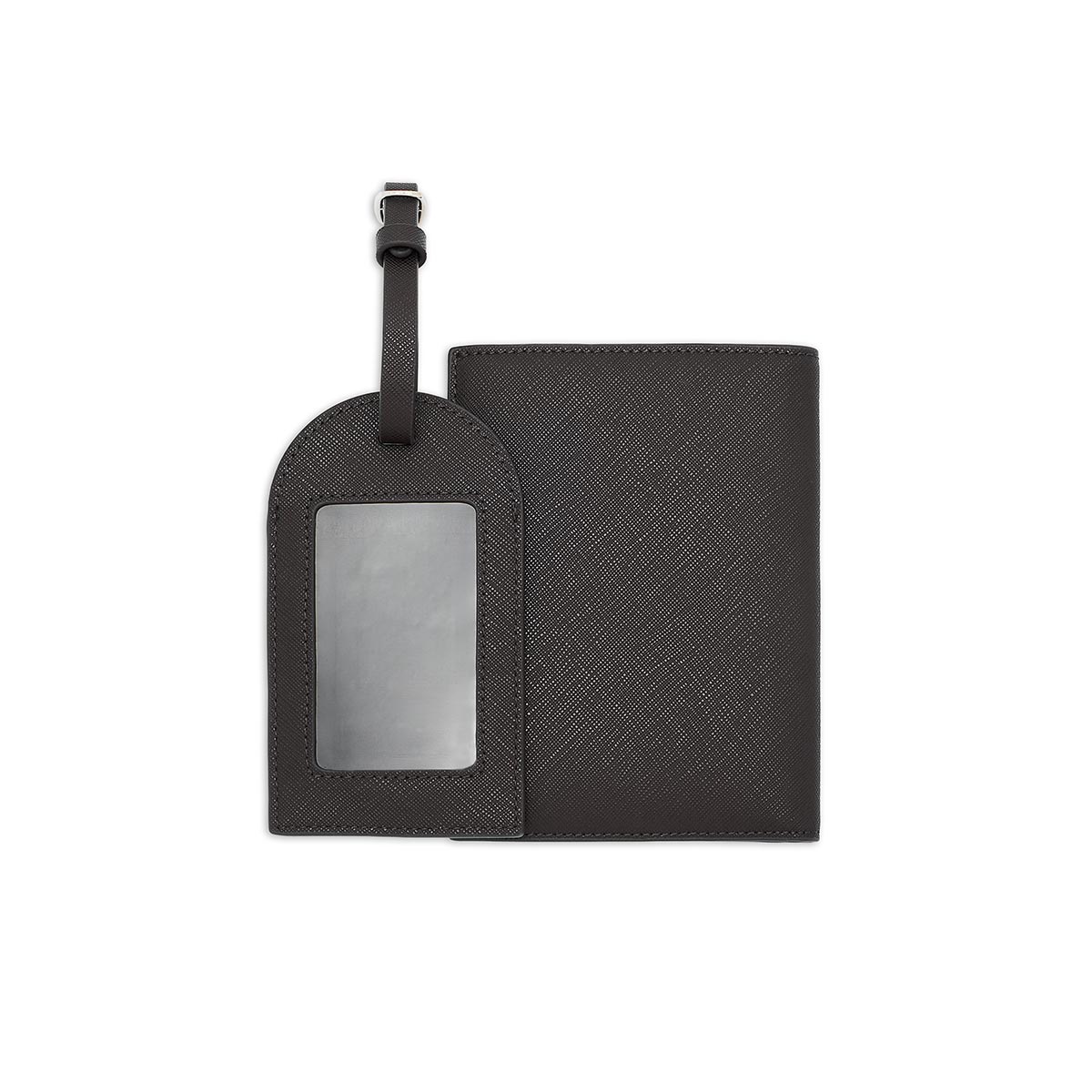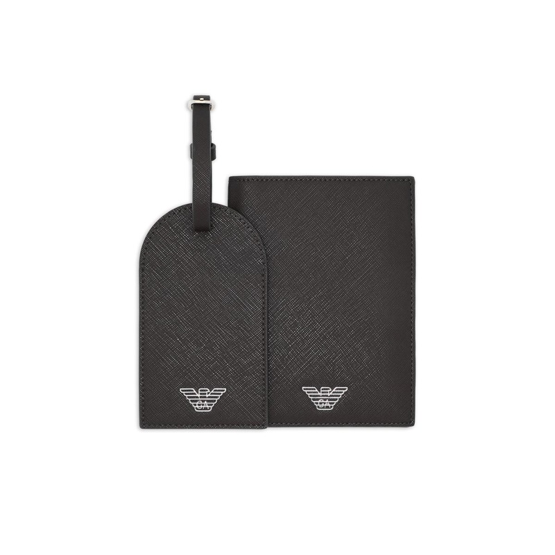 Σετ του οίκου Emporio Armani που περιλαμβάνει μια θήκη διαβατηρίου και μια ετικέτα αποσκευών, κατασκευασμένα από οικολογικό δέρμα Saffiano, το οποίο συνδυάζει την ανθεκτικότητα και την κομψή υφή του Saffiano με τις βιώσιμες πρακτικές του οίκου. Ιδανικό για την οργάνωση των ταξιδιωτικών εγγράφων με ασφάλεια και στυλ, είτε για επαγγελματικά ταξίδια είτε για αναψυχή.