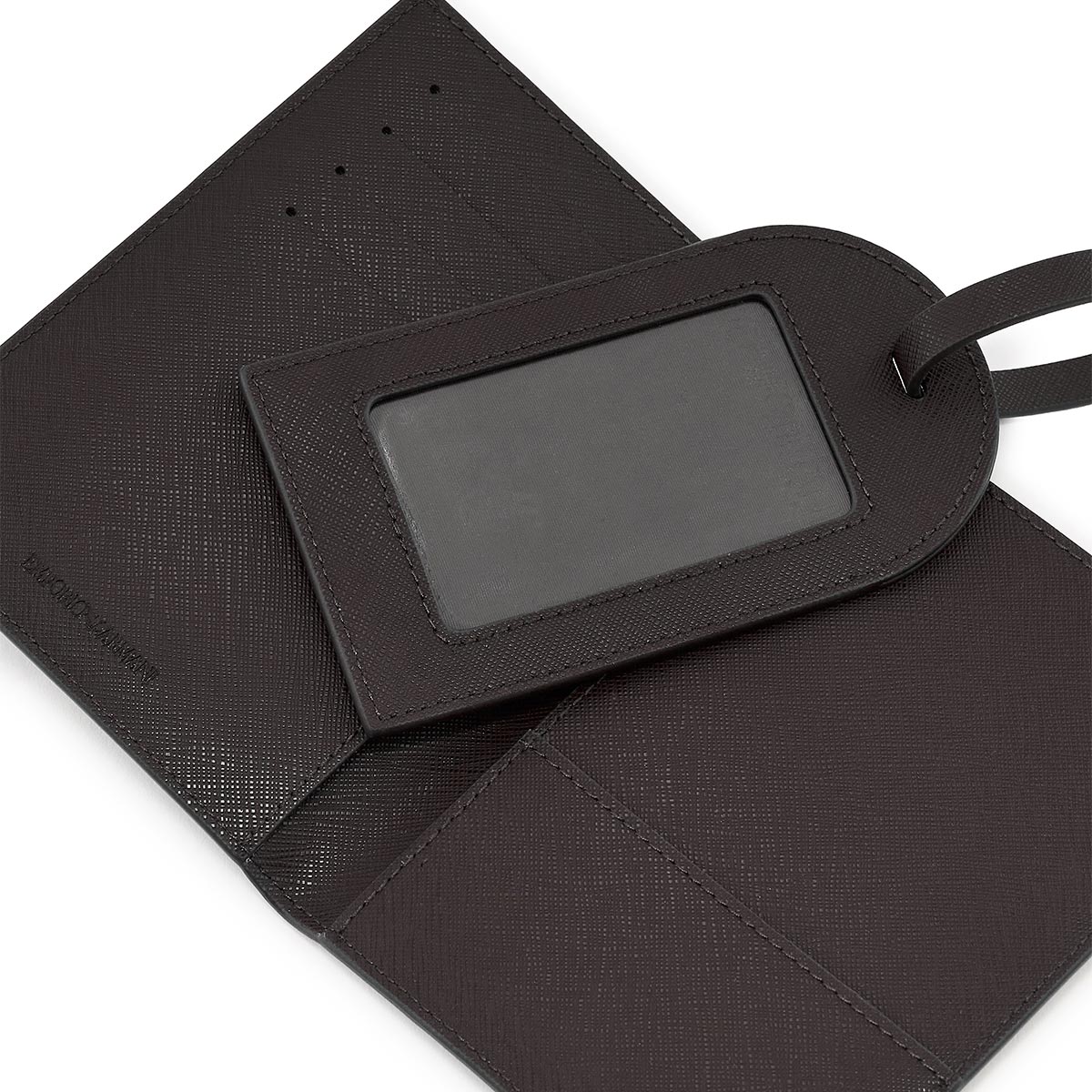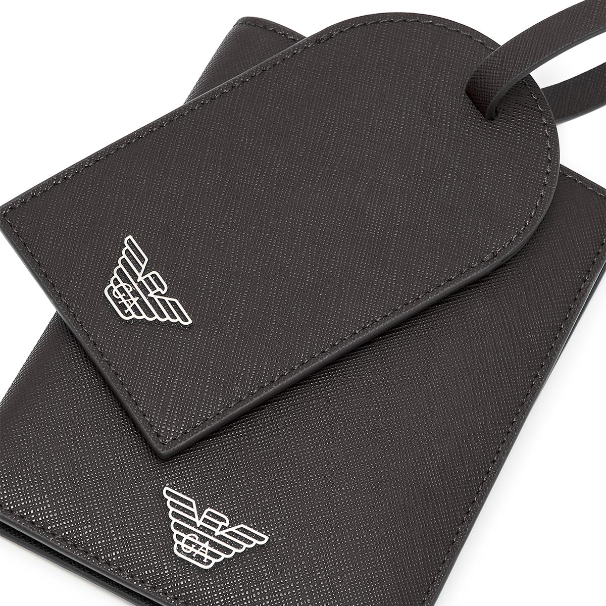 EMPORIO ARMANI ΣΕΤ ΘΗΚΗ ΔΙΑΒΑΤΗΡΙΟΥ – ΕΤΙΚΕΤΑ ΑΠΟΣΚΕΥΗΣ SAFFIANO ΣΚΟΥΡΟ ΚΑΦΕ