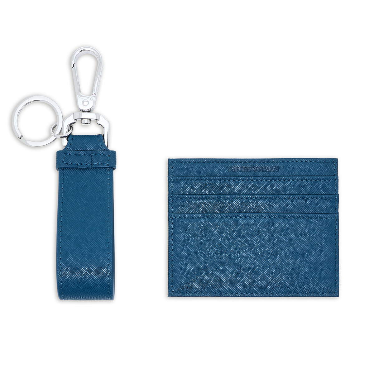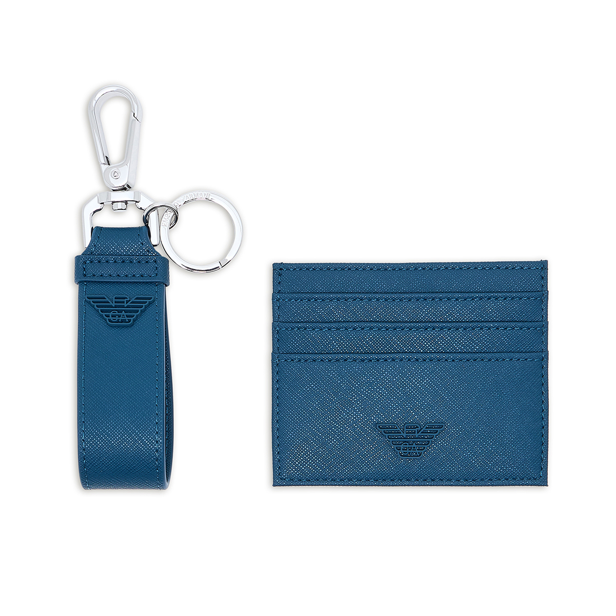 Σετ από την εταιρεία Emporio Armani σε μπλε χρώμα. Περιλαμβάνει ένα μπρελόκ και μια καρτοθήκη.