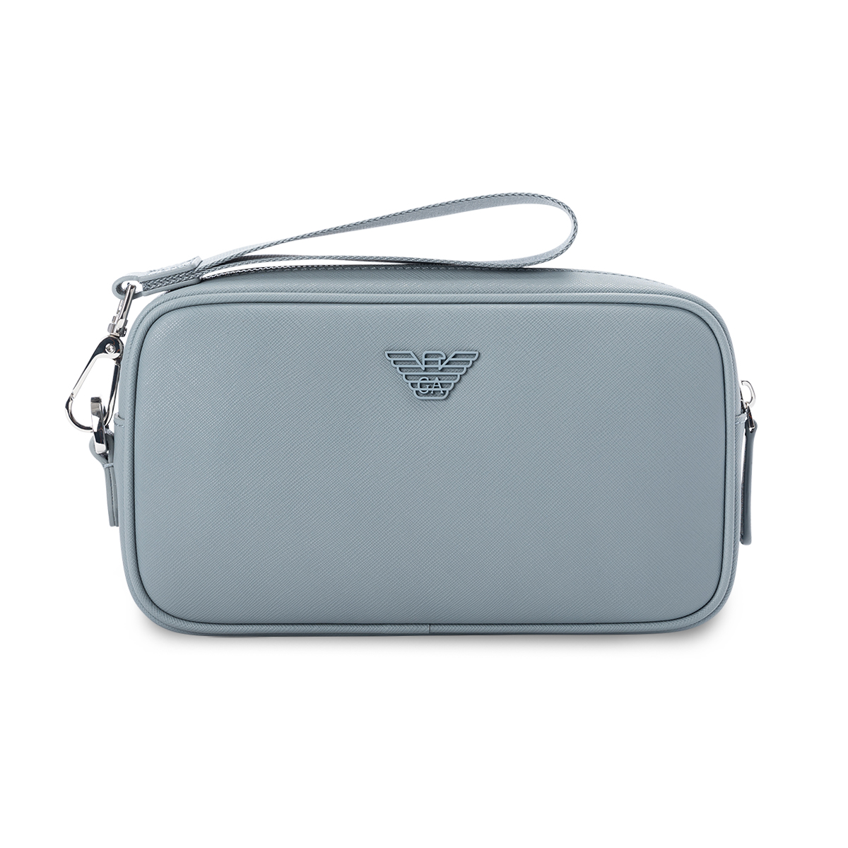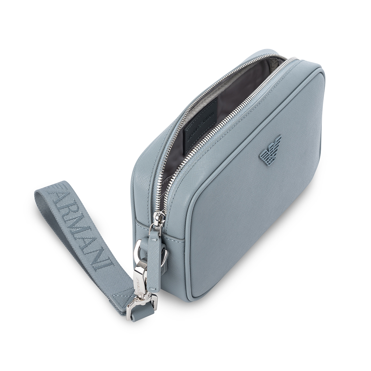 Τσάντα καλλυντικών της εταιρείας Emporio Armani σε γκρι χρώμα. Διαθέτει έναν μεγάλο, ενιαίο χώρο. Ιδανικό για άντρες και για γυναίκες.