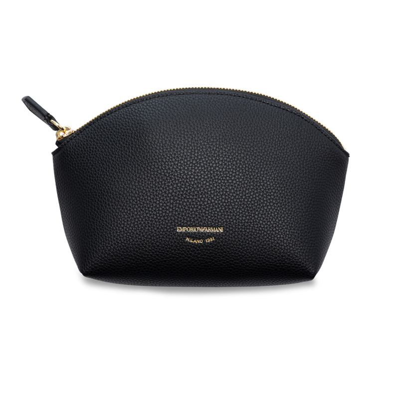 Τσάντα καλλυντικών της εταιρείας Emporio Armani σε μαύρο χρώμα. Διαθέτει έναν μεγάλο, ενιαίο χώρο. Ιδανικό για άντρες και για γυναίκες. Διαστάσεις: 21 x 14 cm Όλα τα προϊόντα μας αποστέλλονται σε συσκευασία δώρου. Με την υπηρεσία της προσωποποίησης μπορείτε να προσθέσετε μονόγραμμα, το όνομα ή το λογότυπό σας.