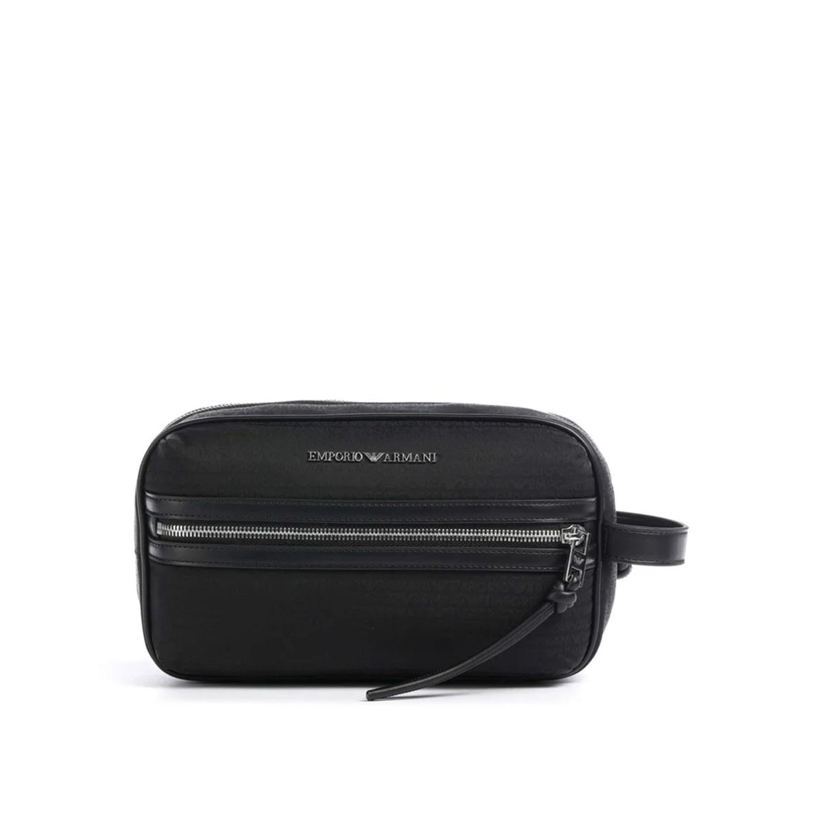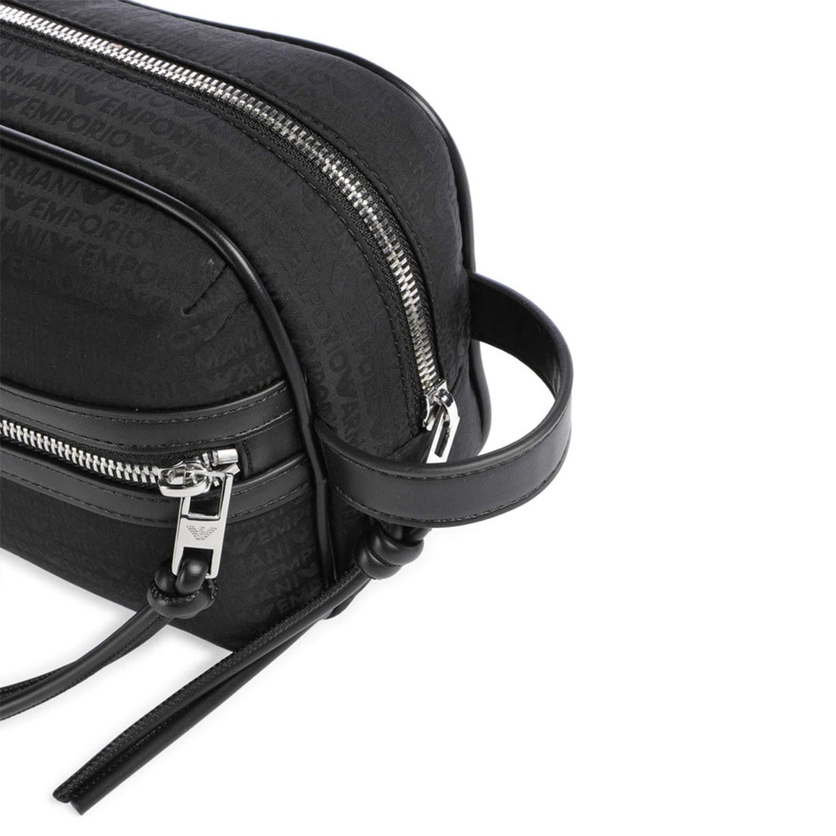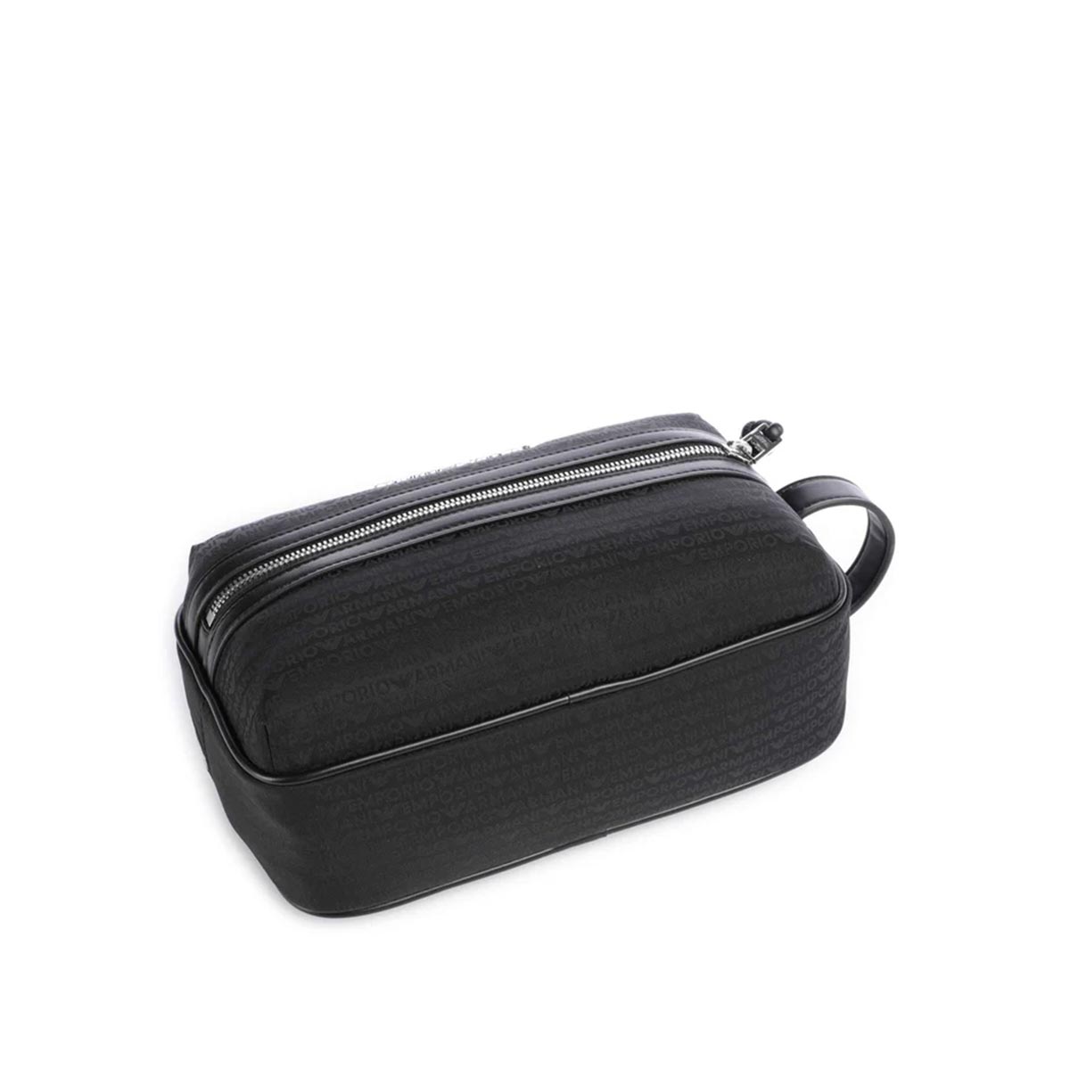 Το τσαντάκι προσωπικών ειδών του οίκου Emporio Armani είναι ένα κομψό ανδρικό νεσεσέρ, ιδανικό για ταξίδια και καθημερινή οργάνωση. Διαθέτει το χαρακτηριστικό all-over monogram print του οίκου σε μαύρο χρώμα. Περιλαμβάνει μια σταθερή λαβή καρπού για εύκολη μεταφορά. Έχει μία κύρια θήκη που κλείνει με φερμουάρ, μία εξωτερική τσέπη με φερμουάρ στο μπροστινό μέρος και εσωτερική τσέπη με φερμουάρ και μία θήκη για κάρτες.