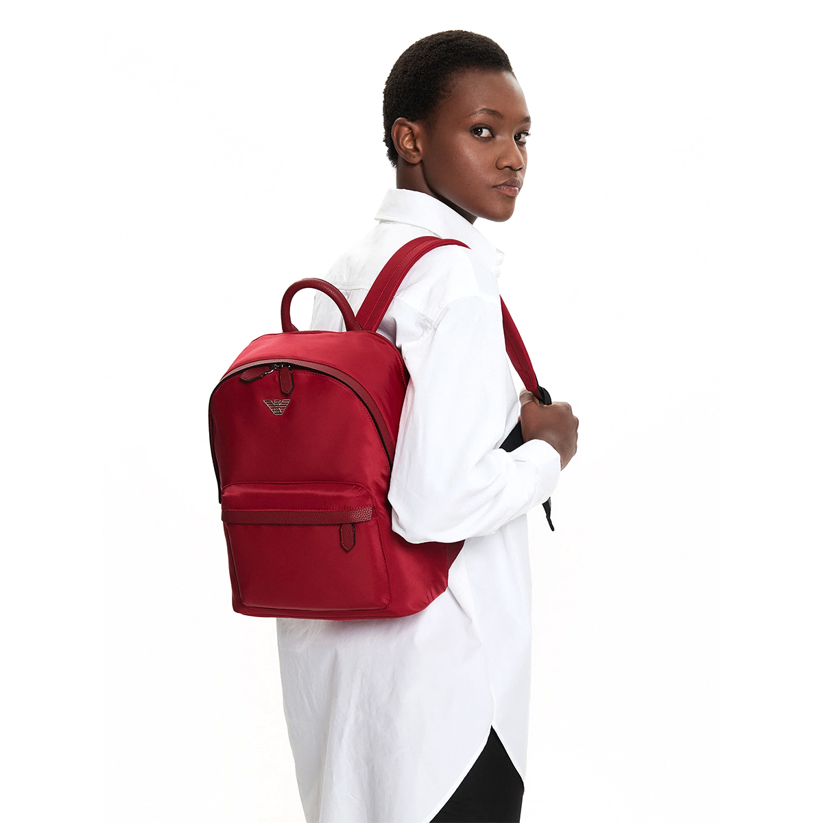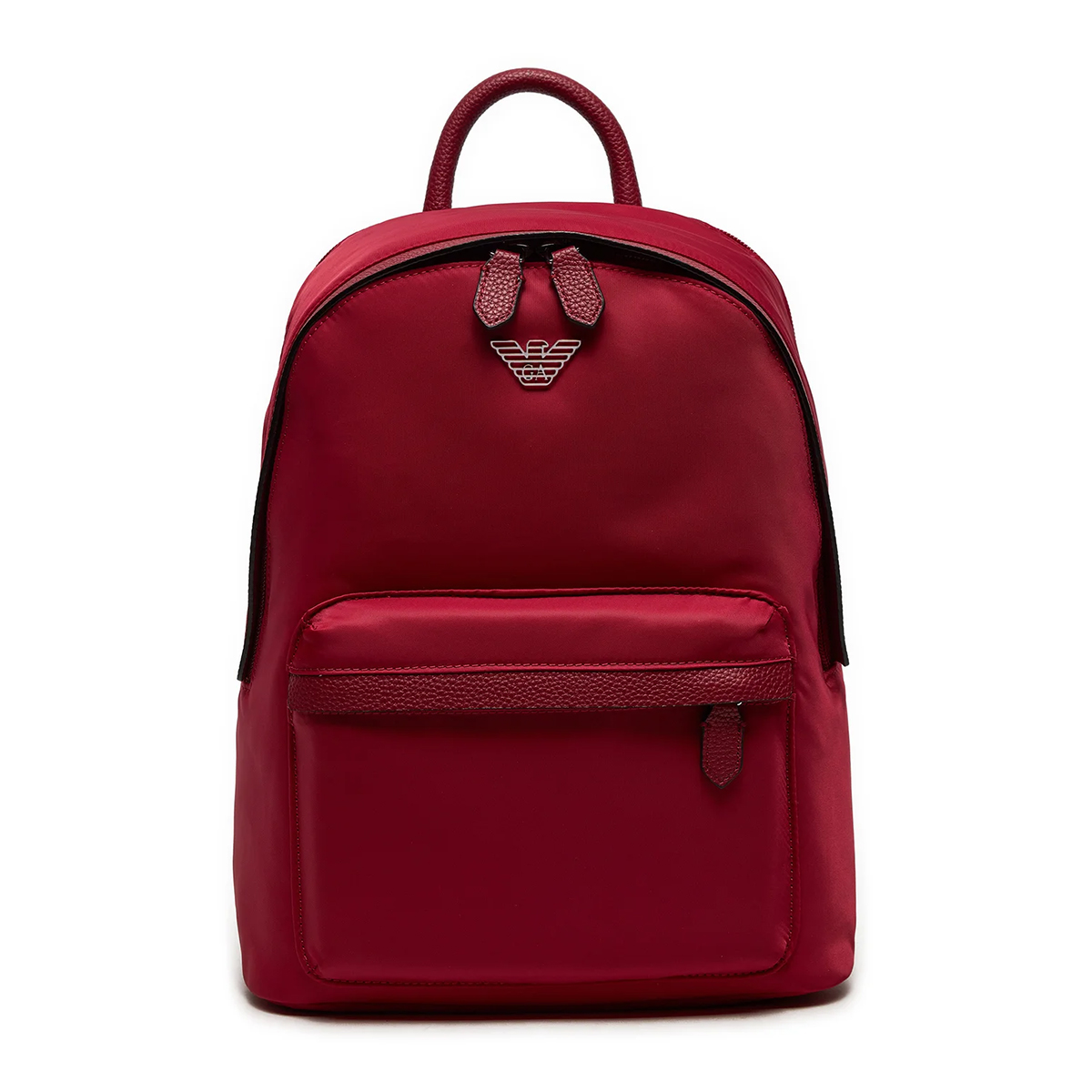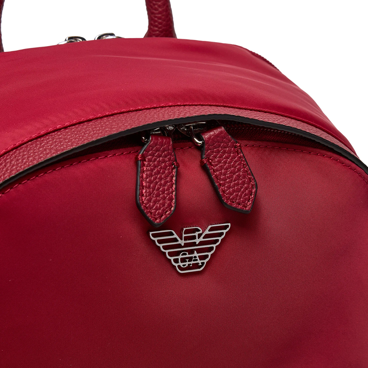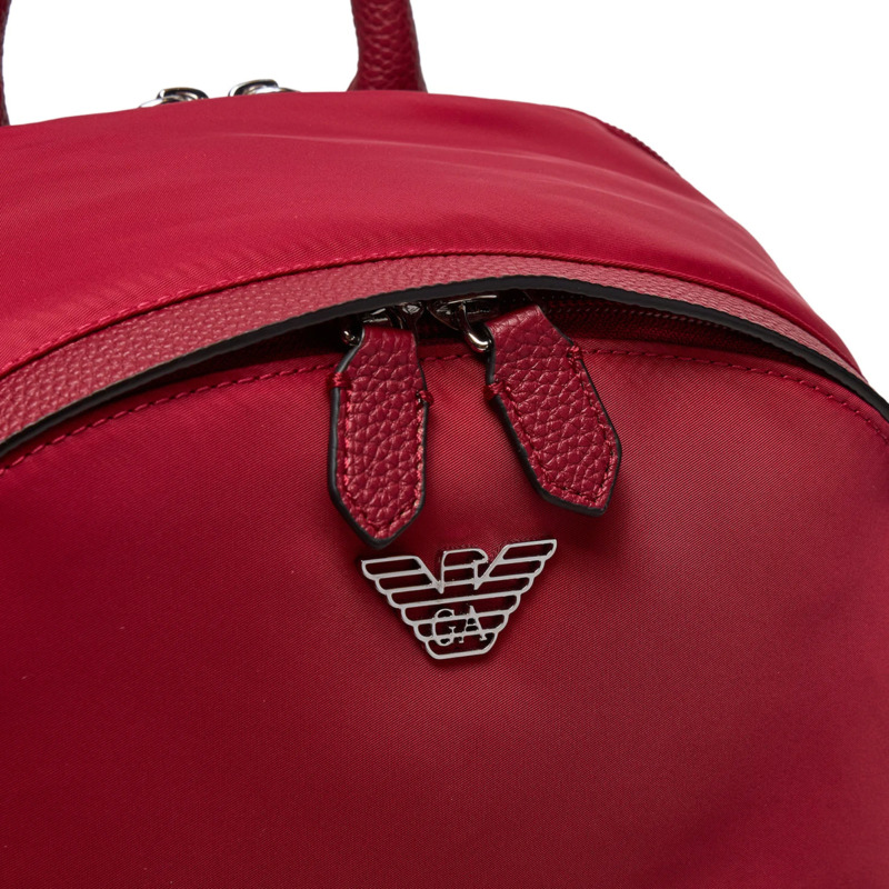 Τσάντα πλάτης Emporio Armani από αδιάβροχο δέρμα σε κόκκινο χρώμα. Εσωτερικά διαθέτει μια κύρια ενιαία θήκη.