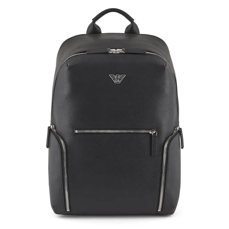 Τσάντα πλάτης Emporio Armani από οικολογικό δέρμα σε μαύρο χρώμα. Διαθέτει έναν ενιαίο χώρο, τσέπες εσωτερικά και εξωτερική βοηθητική τσέπη με φερμουάρ. Επιπλέον διαθέτει ρυθμιζόμενα λουριά. Μπορεί να χωρέσει laptop μέχρι 15 ίντσες