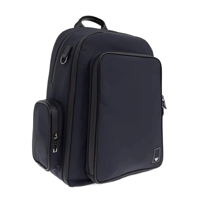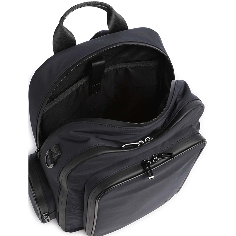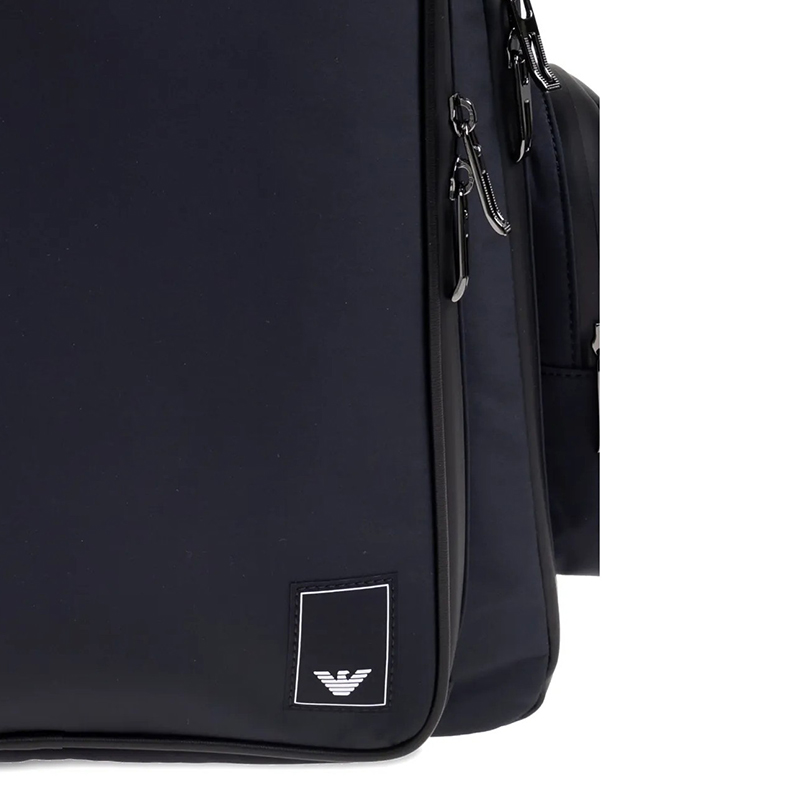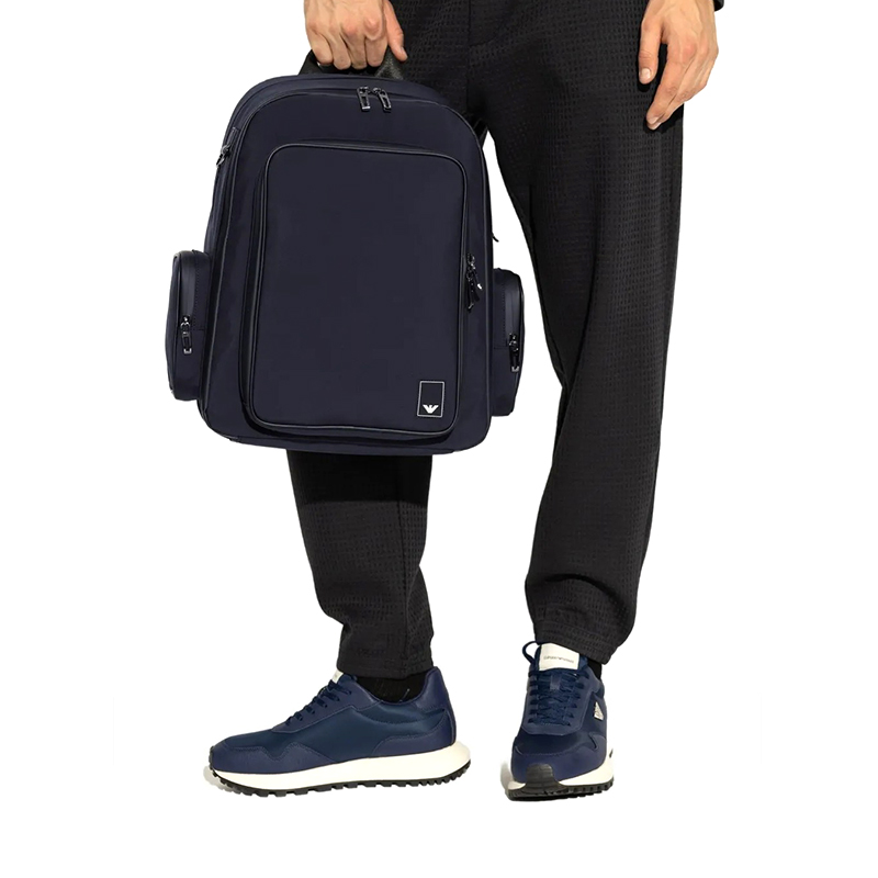 Τσάντα πλάτης Emporio Armani από πολυεστέρα σε μπλε χρώμα. Διαθέτει τρεις εσωτερικους χώρους , δυο πλαϊνές τσέπες εσωτερικά και θήκη για φορητό υπολογιστή.Επιπλέον διαθέτει ρυθμιζόμενα λουριά. Διαστάσεις: 32x42x16 εκ.