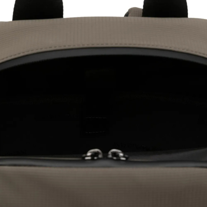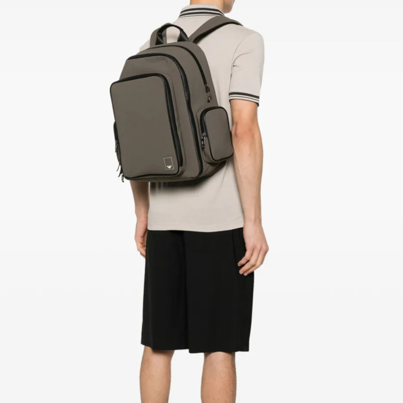 Τσάντα πλάτης από την εταιρεία Emporio Armani σε μόκα χρώμα. Η τσάντα είναι κατασκευασμένη από ύφασμα και είναι διάστασης 20 x 30 x 35 cm. Διαθέτει 3 μεγάλες θήκες και 2 μικρότερες. Όλα τα προιόντα μας αποστέλλονται σε συσκευασία δώρου.