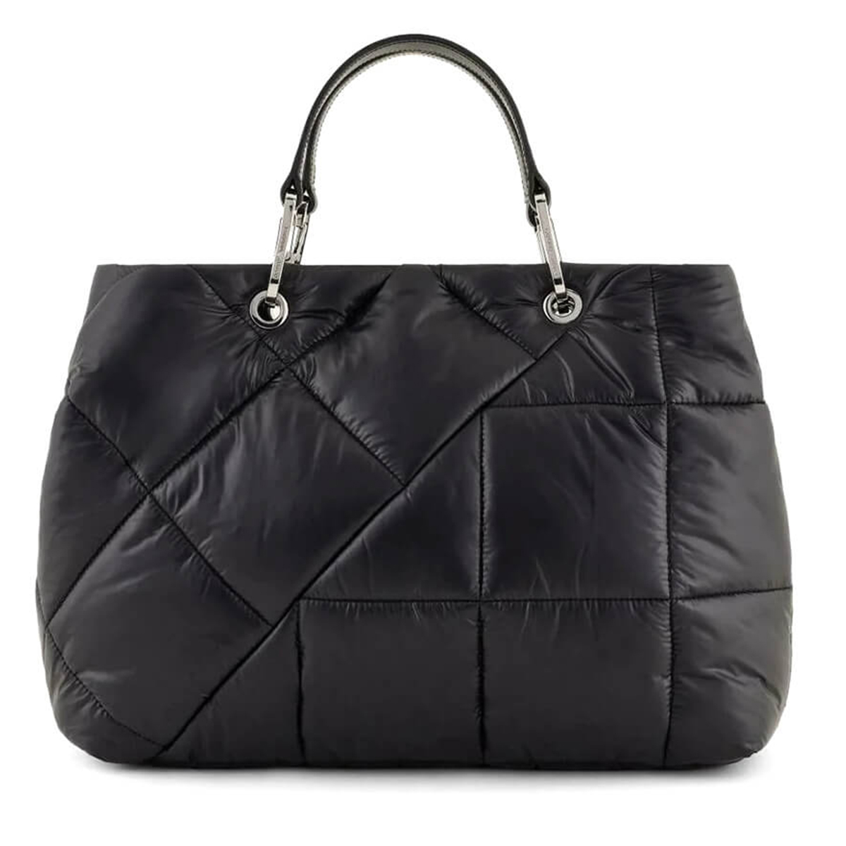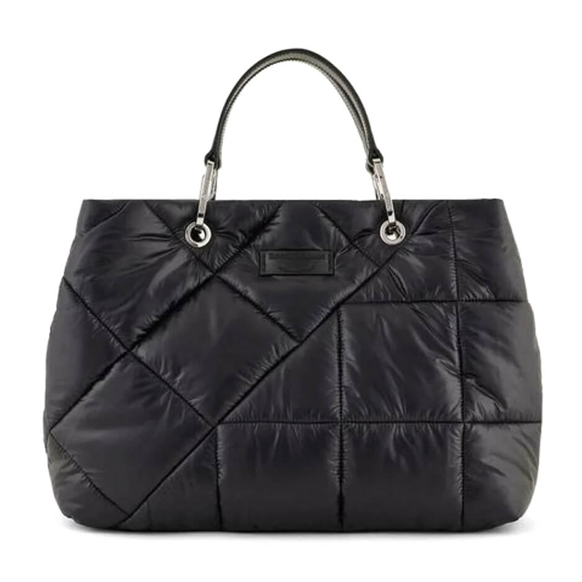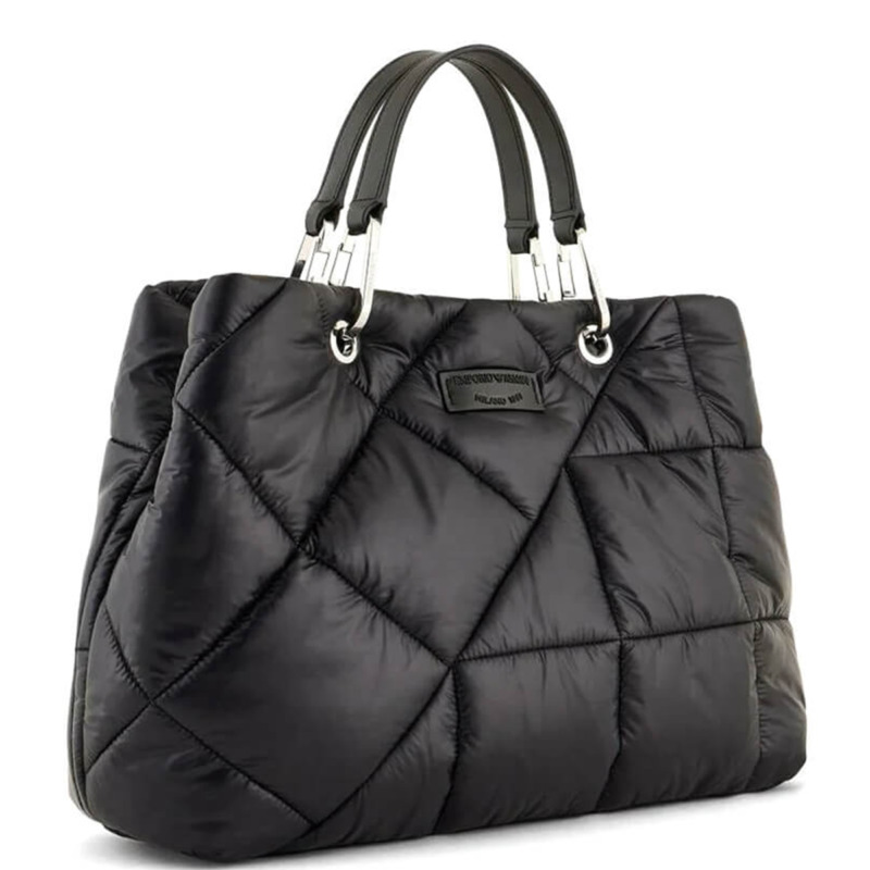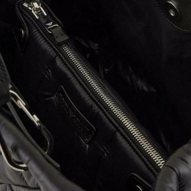 Τσάντα της Emporio Armani σε μαύρο χρώμα. Το υλικό κατασκευής της τσάντας είναι Puffer με καπιτονέ σχεδιασμό.
