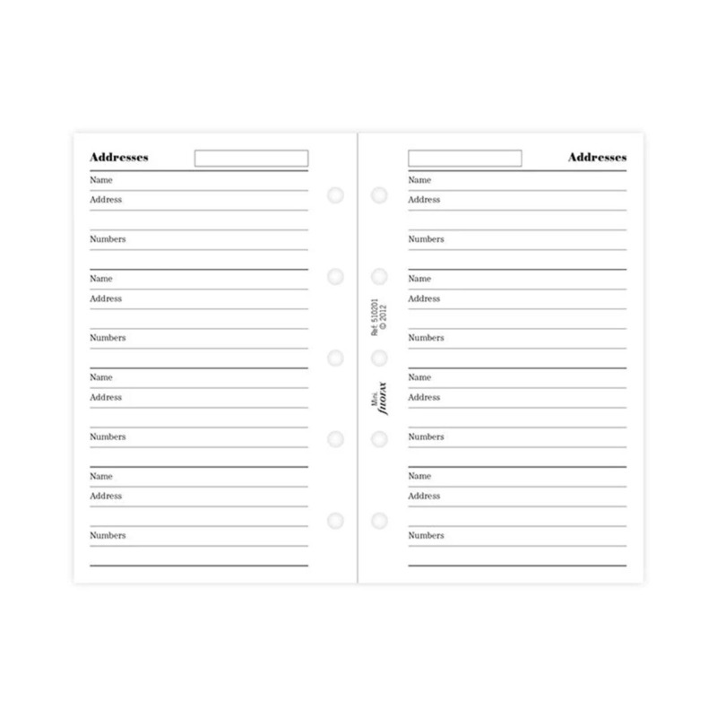 Αποθηκεύστε τις επαφές σας σε αυτά τα φύλλα για τηλέφωνα. Ποσότητα: 20 φύλλα. Συμβατό με: Mini Organisers