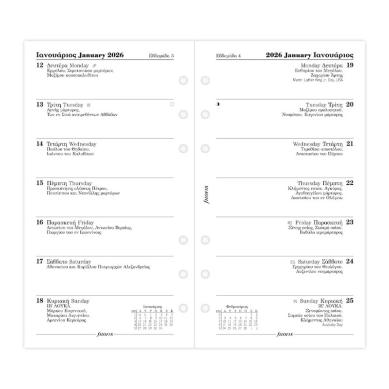 FILOFAX ΑΝΤΑΛΛΑΚΤΙΚΟ PERSONAL ΗΜΕΡΟΛΟΓΙΟ ΕΒΔΟΜΑΔΑ ΣΕ 1 ΣΕΛΙΔΑ 2026