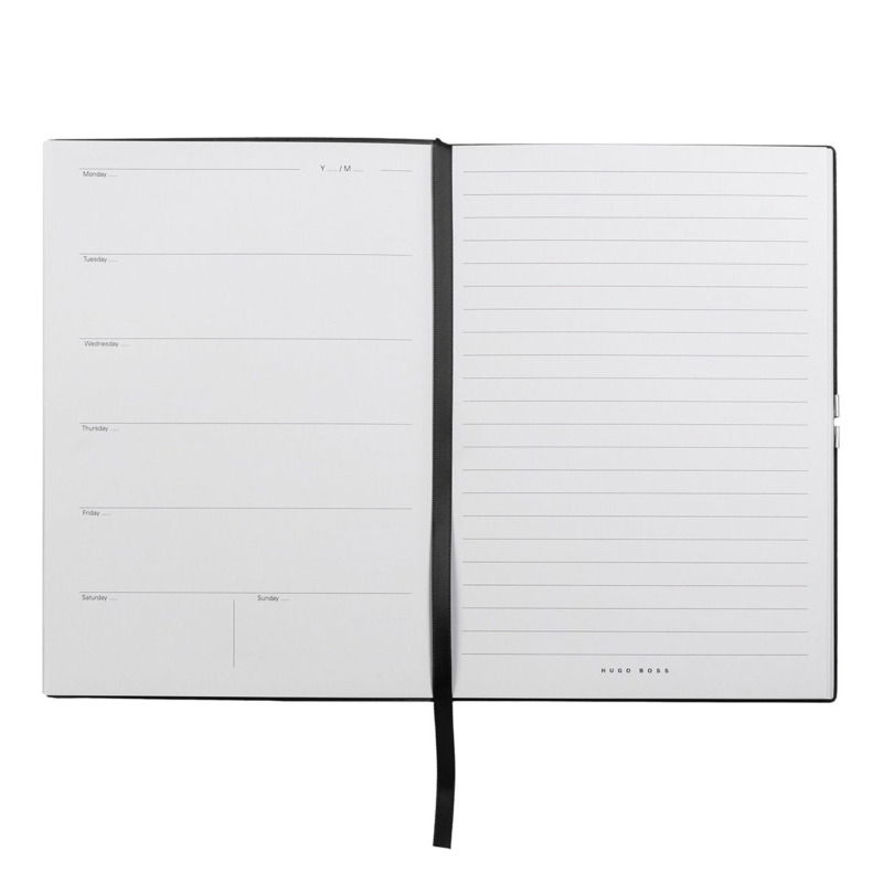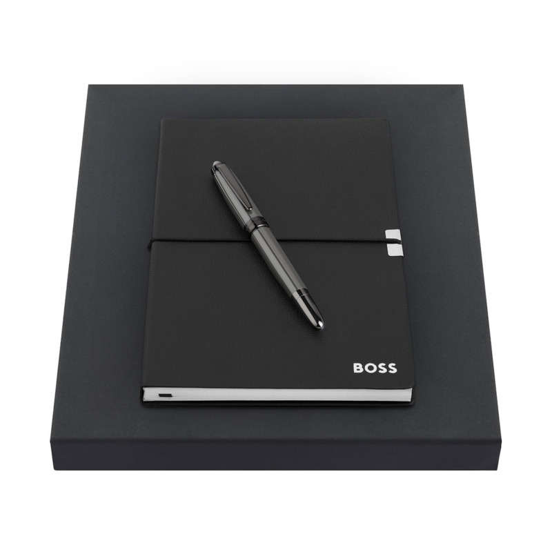 Σετ σημειωματάριο Α5 και στυλό rollerball της εταιρείας Hugo Boss σε χρώμα μαύρο.