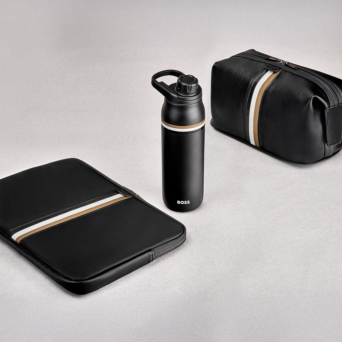 Τσαντάκι προσωπικών ειδών από τον οίκο HUGO BOSS σε μαύρο χρώμα. Αυτό το τσαντάκι είναι η ιδανική επιλογή για να έχετε τα προσωπικά σας αντικείμενα τακτοποιημένα σε κάθε σας ταξίδι.