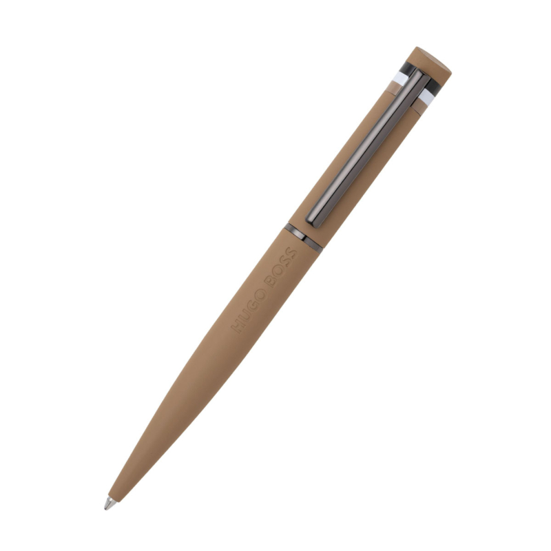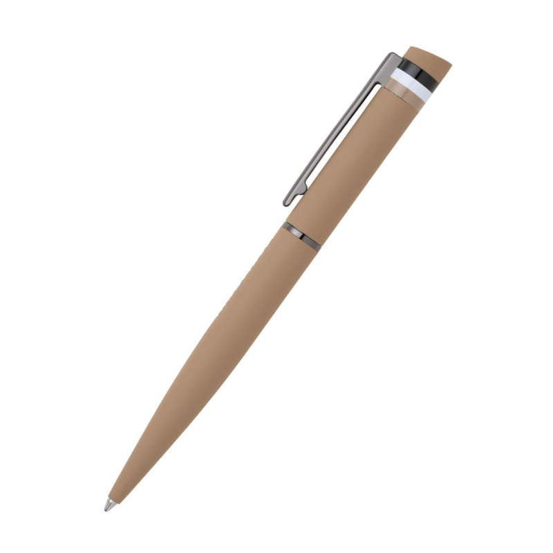 Στυλό διαρκείας σε κάμελ χρώμα. Το σώμα του στυλό είναι κατασκευασμένο από καουτσούκ υφή.